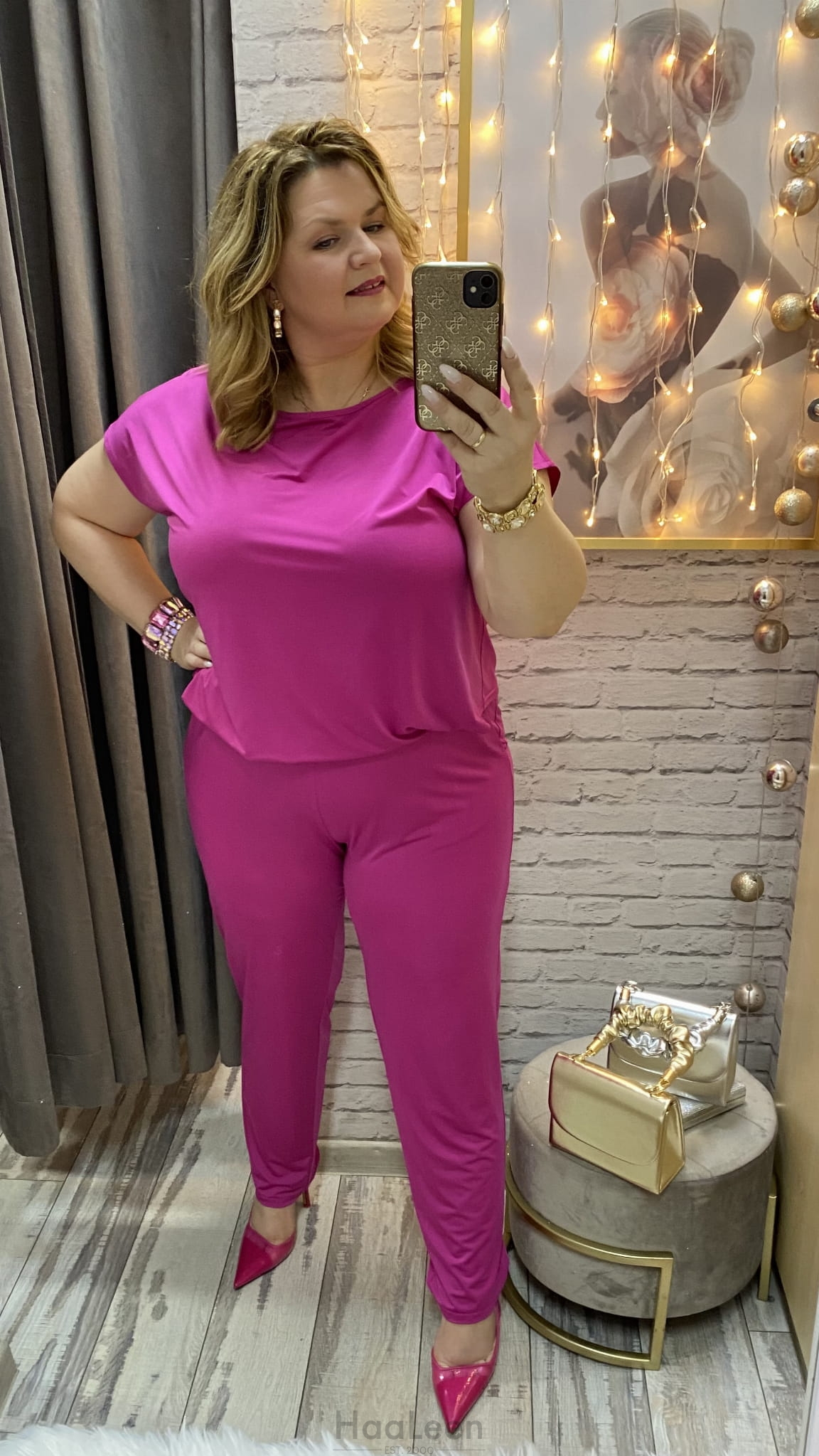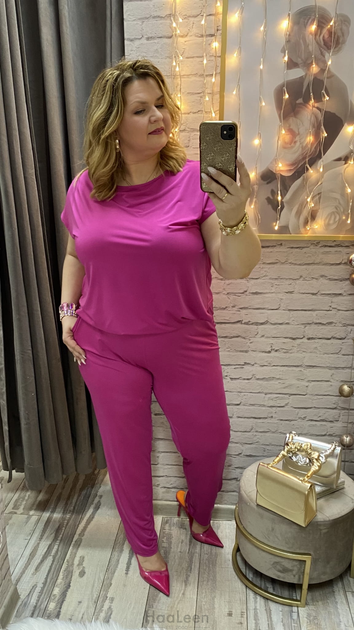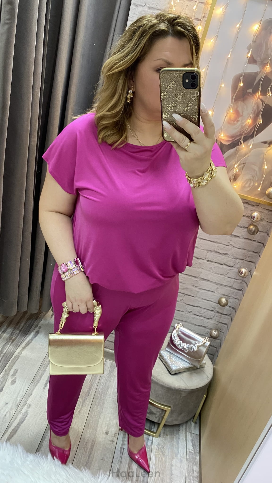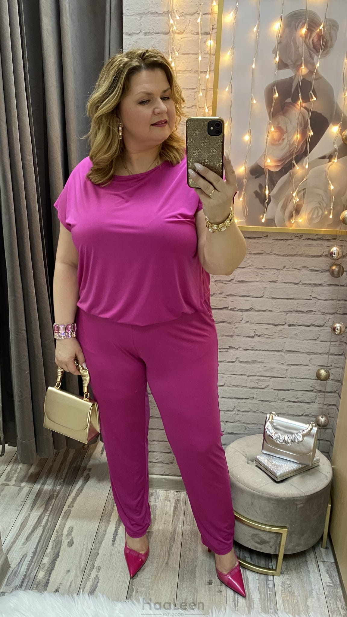 kombinezon ma spodnie na szerokiej gumie, nogawki luźne, bluzka luźna krótki rękaw, dwie kieszenie, lekki, imprezowy, wygodny,