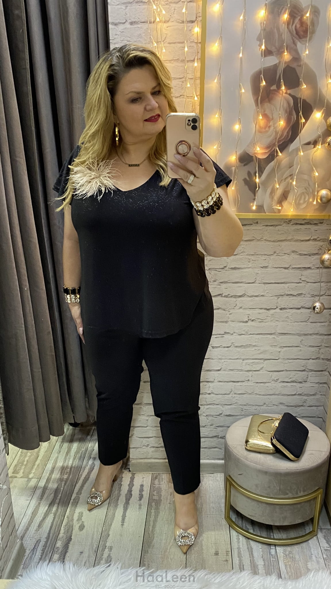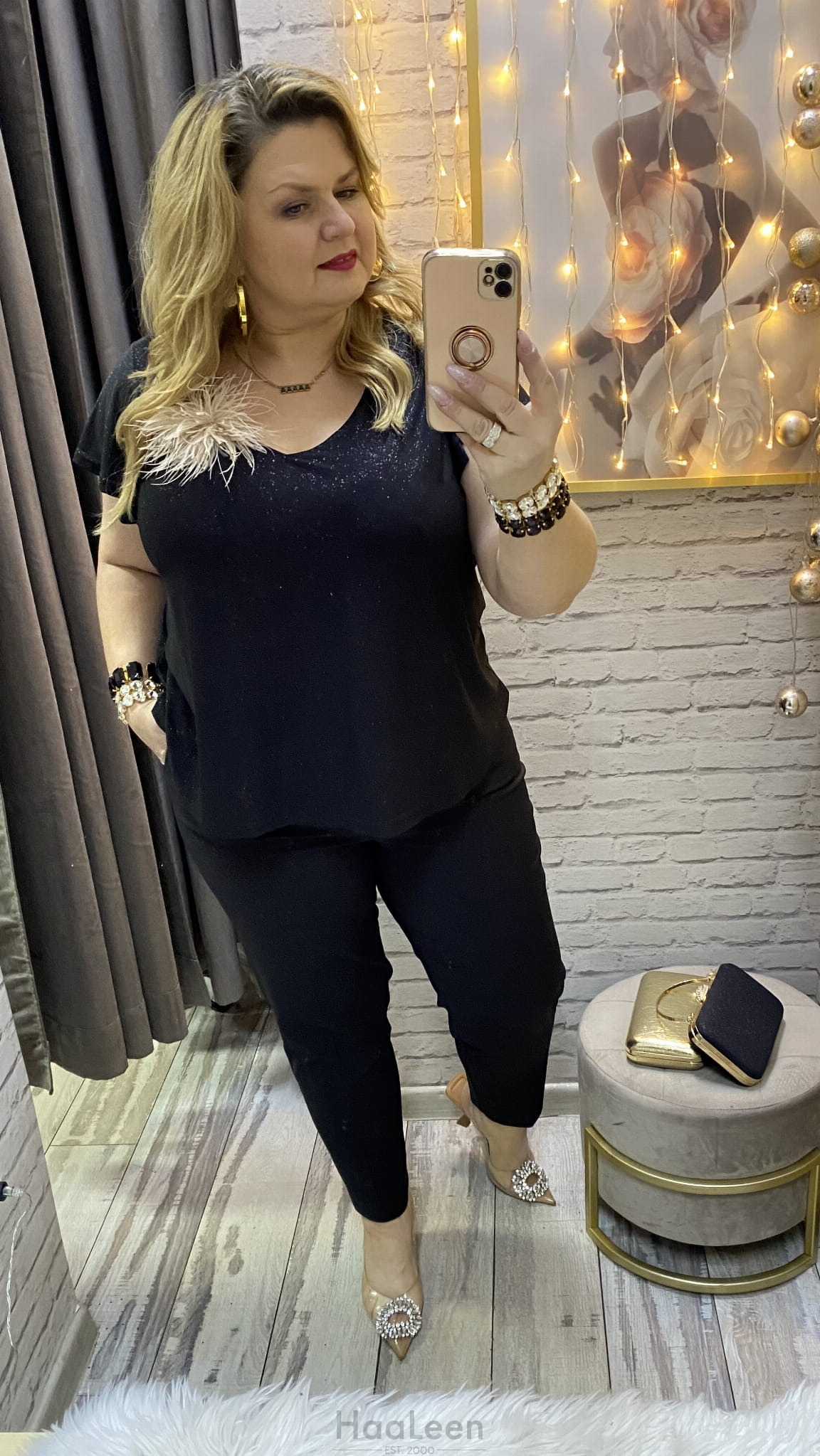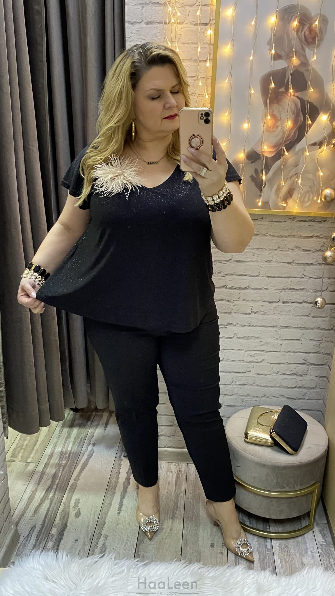 bluzka krój trapez, połyskowa, krój luźny, materiał kryjący, kr. rękawek motylek, dekolt delikatny,