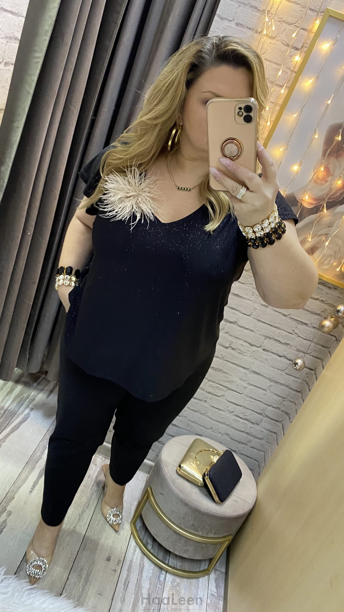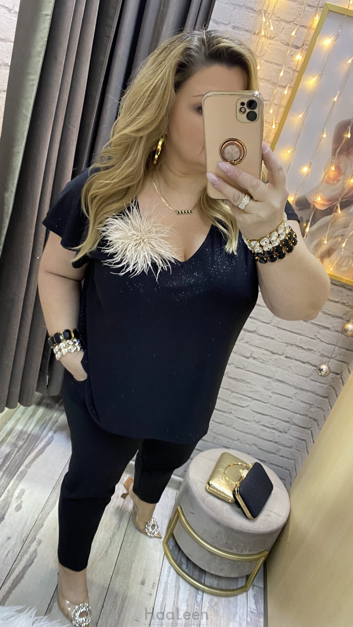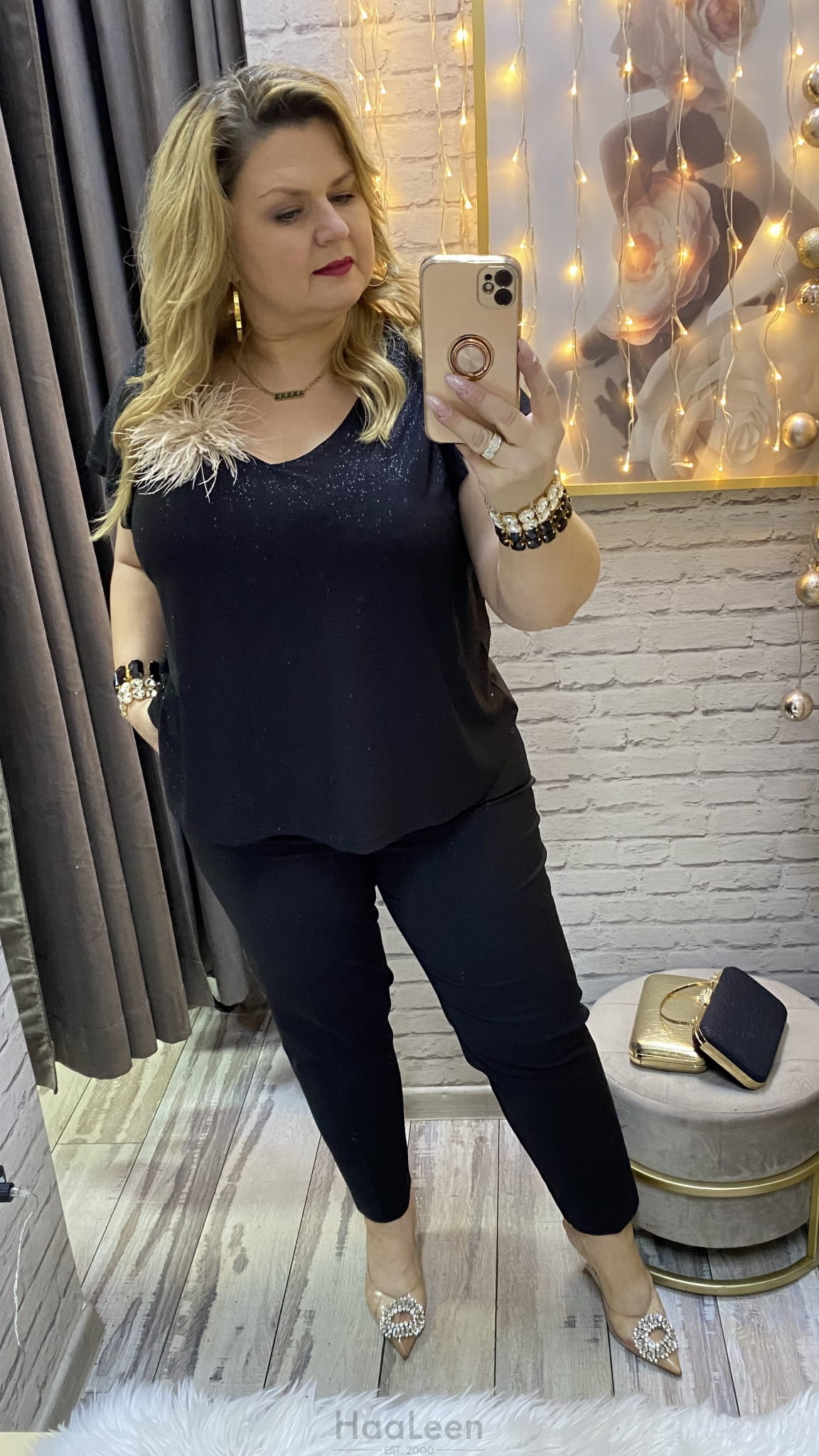 bluzka krój trapez, połyskowa, krój luźny, materiał kryjący, kr. rękawek motylek, dekolt delikatny,