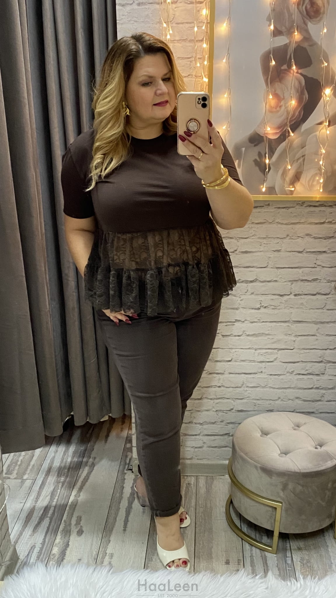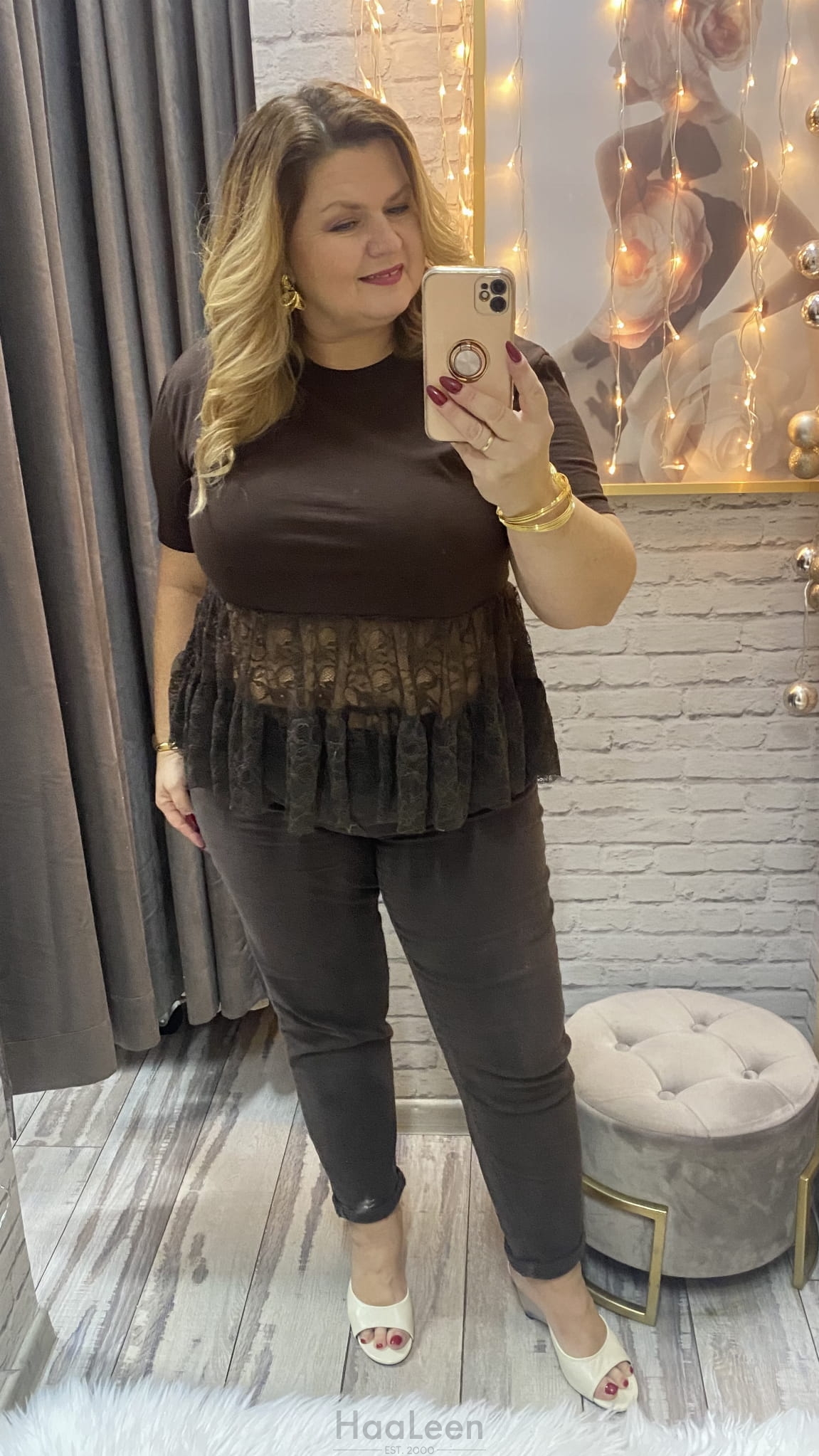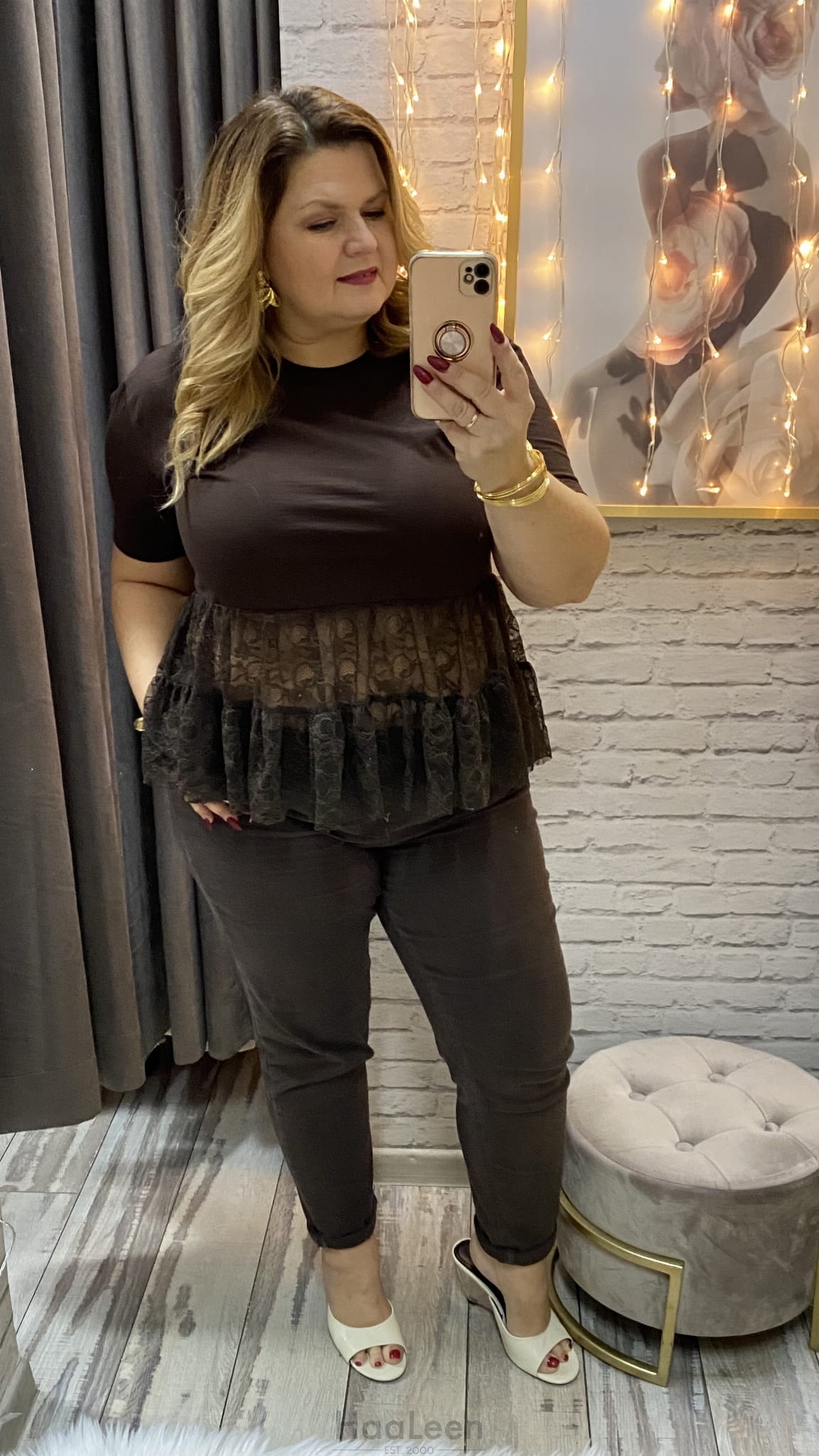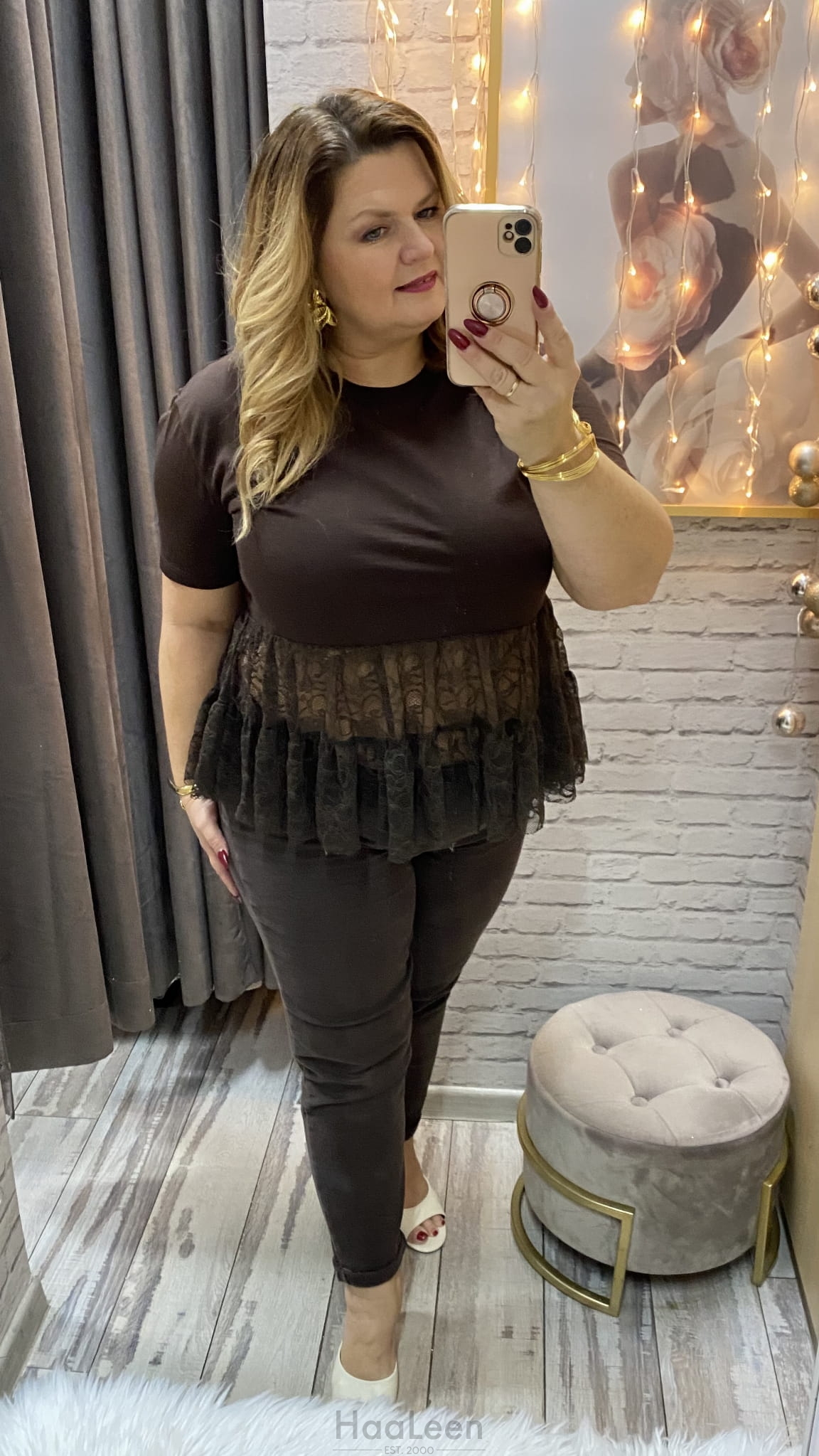 bluzka elegancka, bawełna z koronką, krótki rękaw