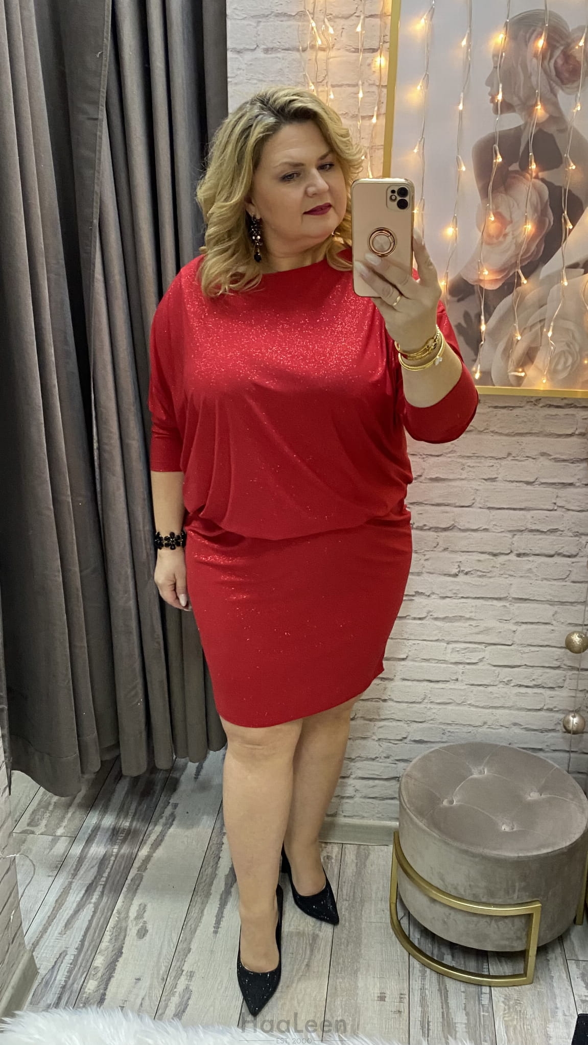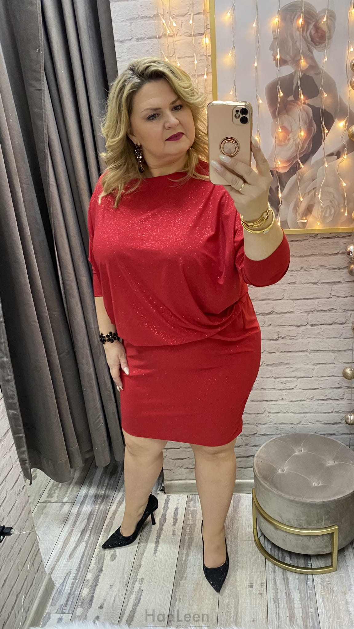 sukienka ALEKSANDRA 36-56 czerwona połysk