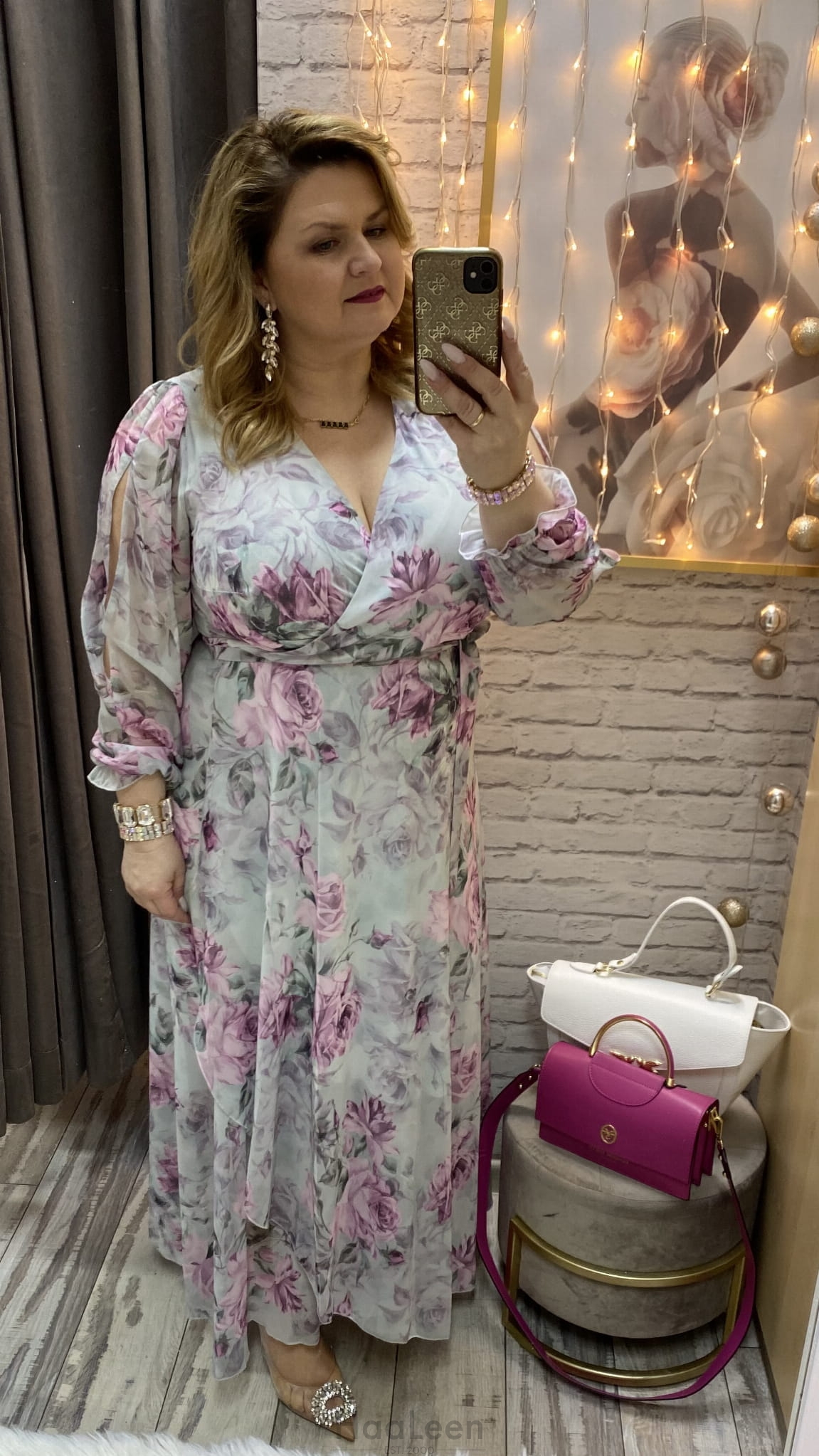 długość: maxi, rękaw długi z rozcięciem, dekolt V do regulacji,