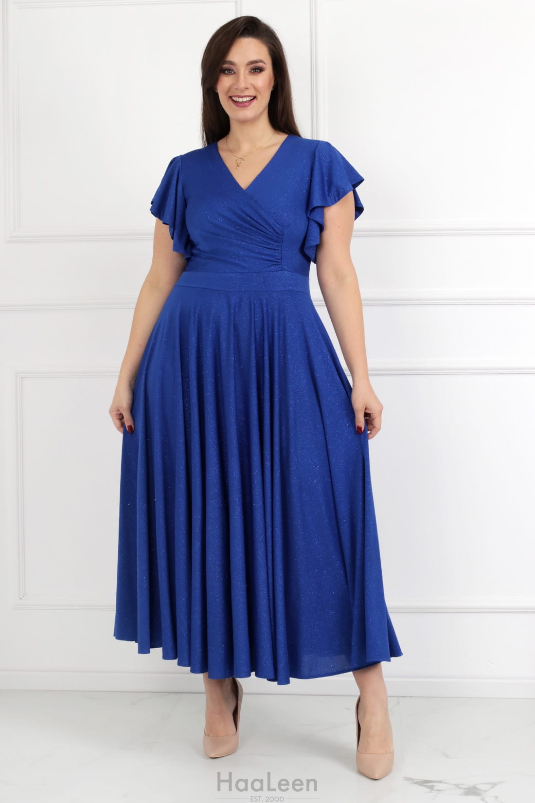 długość: maxi, kobiecy krój, efektowny dekolt zakładany V, dekolt plecy okrągły, zamek na plecach, dopasowana w tali , wyszczupla, podkreśla sylwetkę, tuszuje okolice tali i bioder,