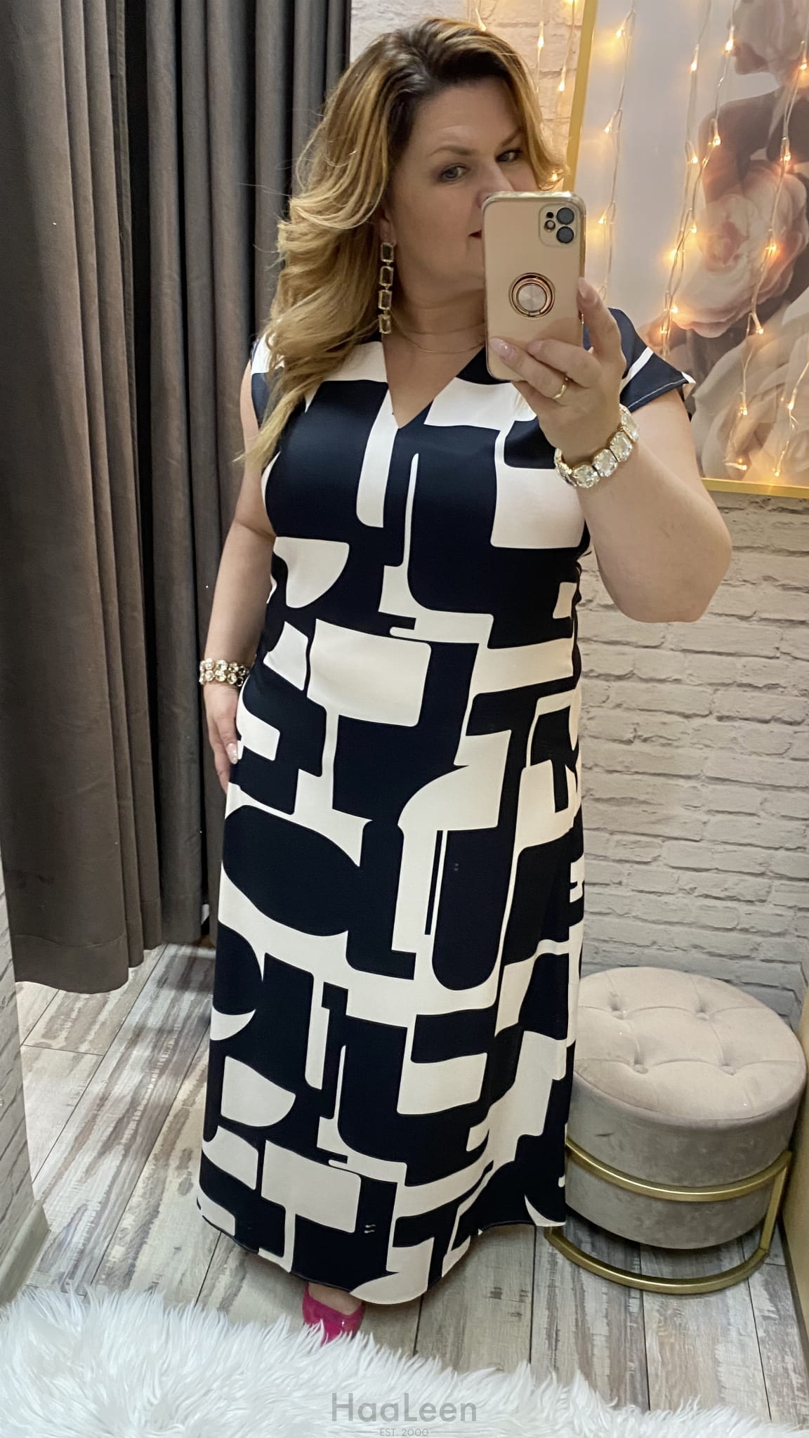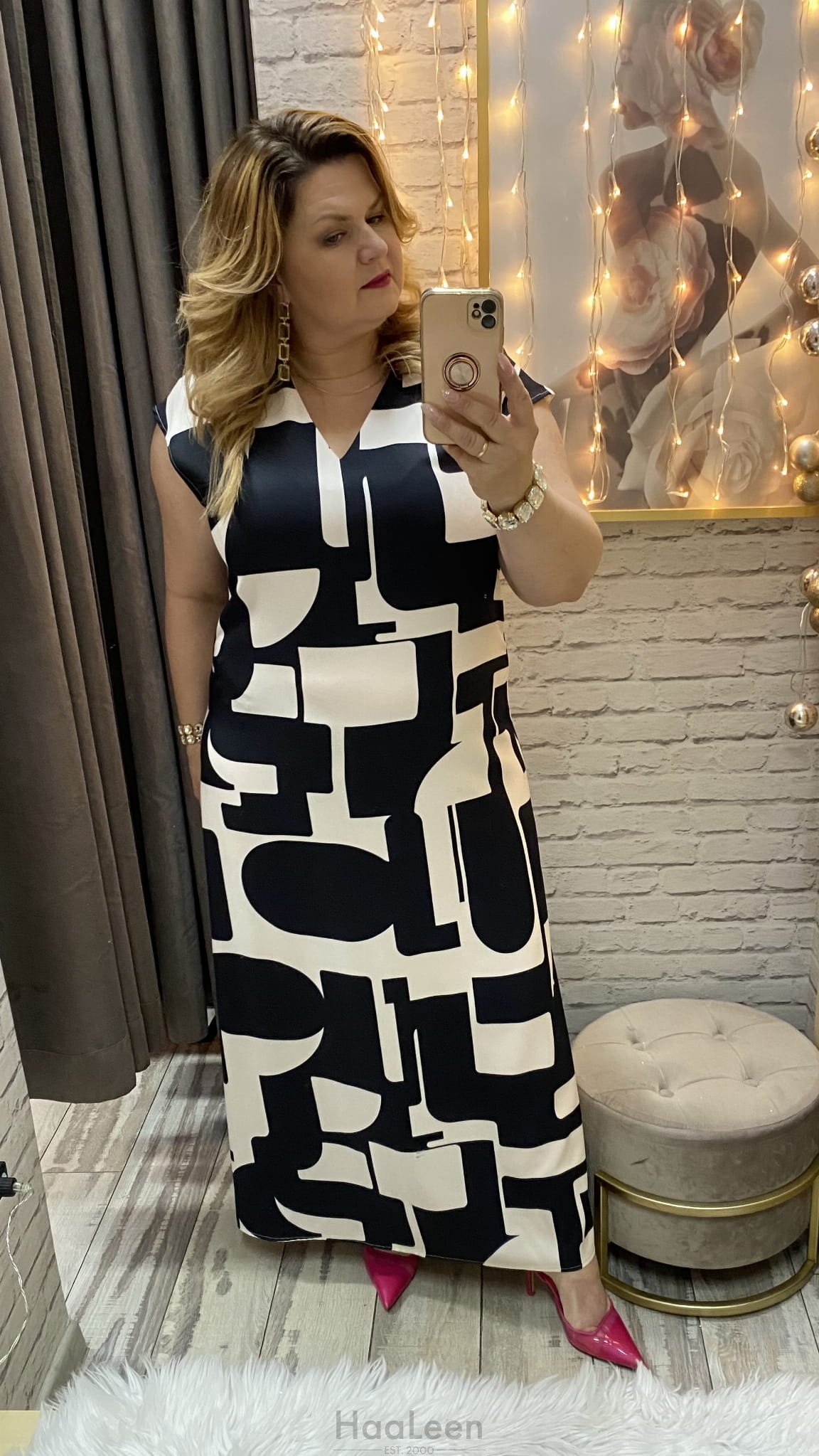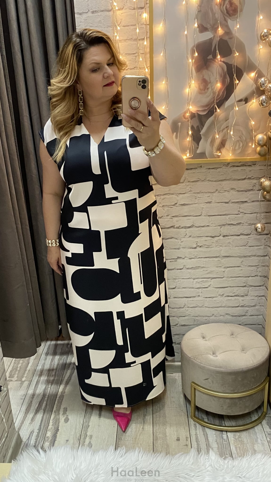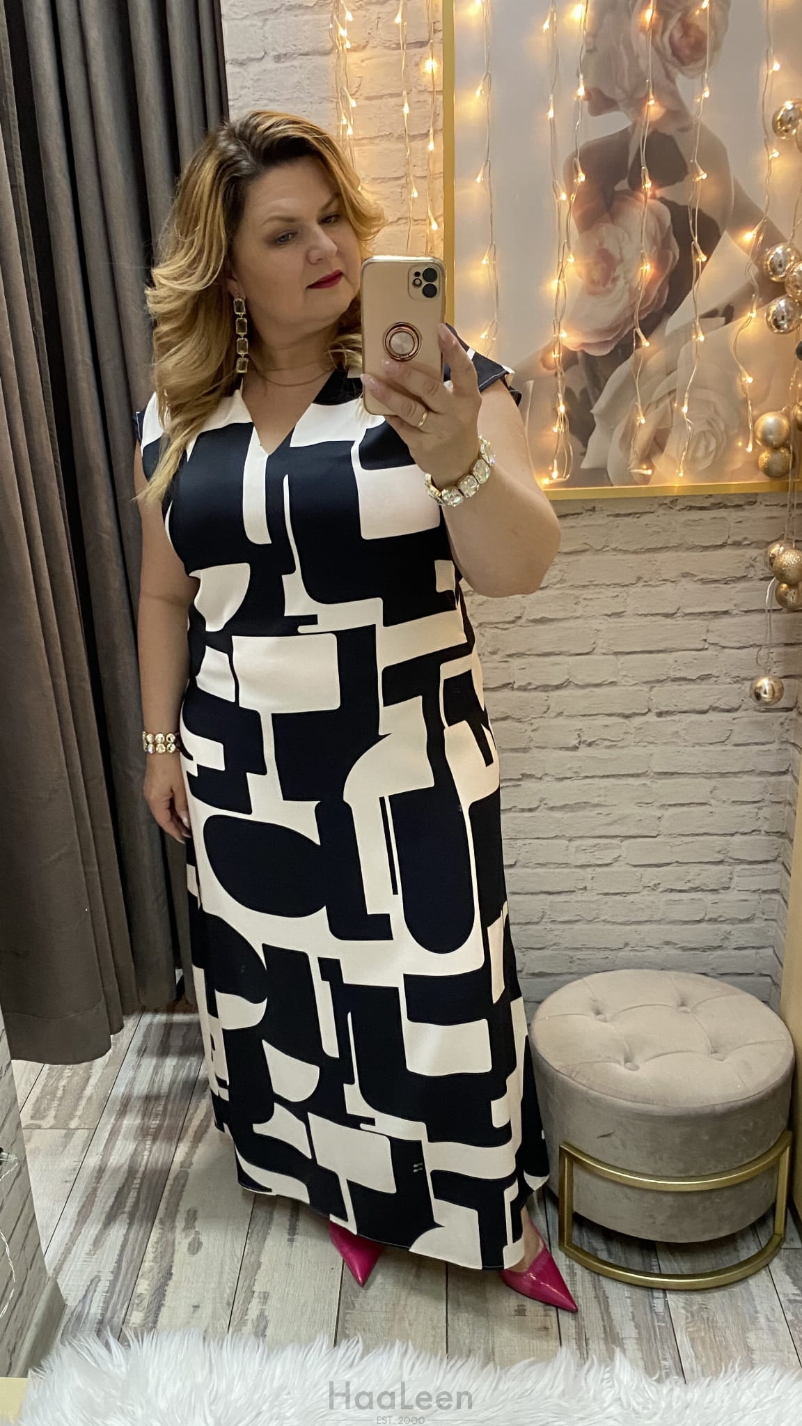 długość: maxi, ołówkowa - trapezowa, dekolt V, dekolt plecy okrągły zabudowane, długość do kostek