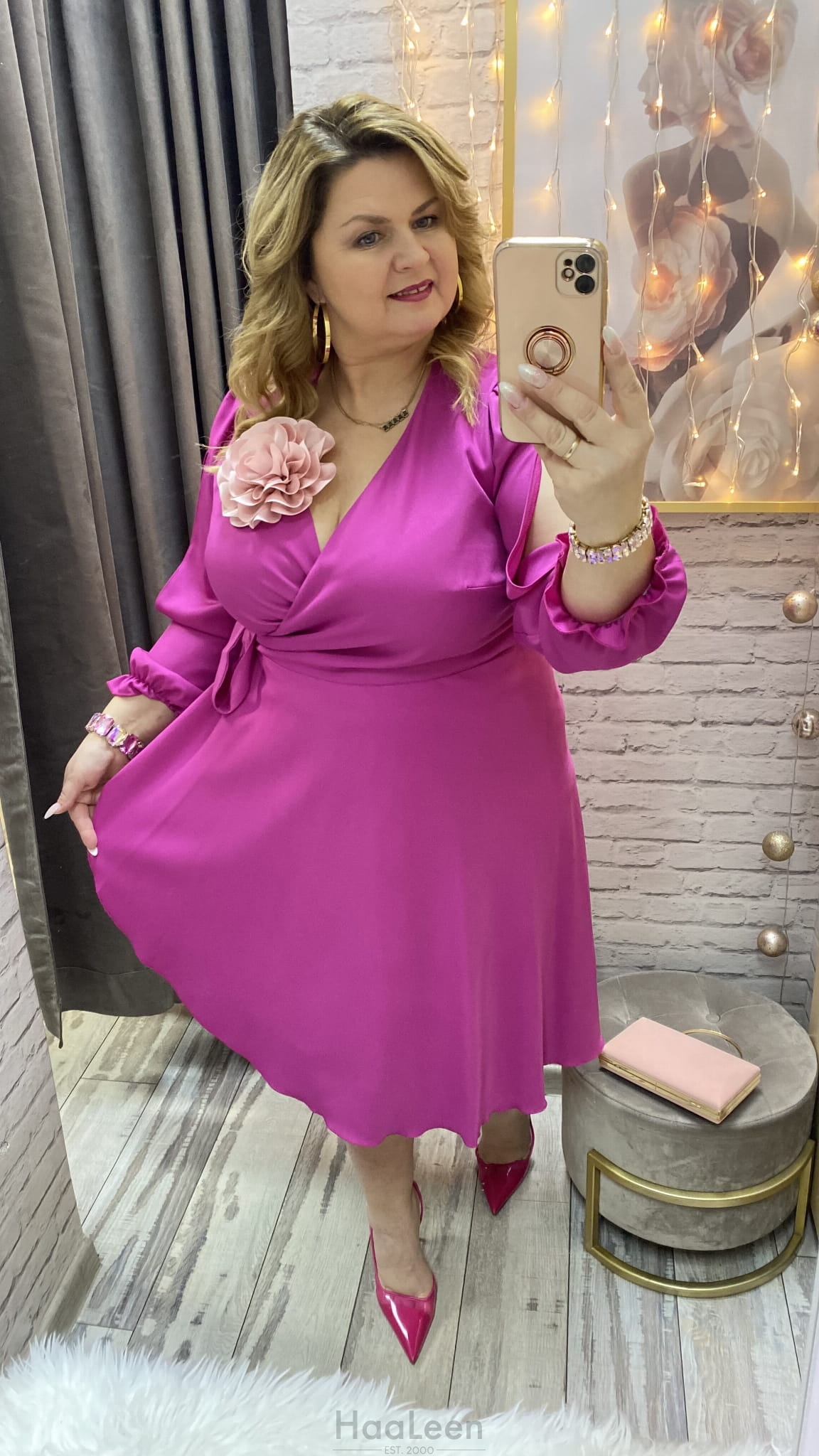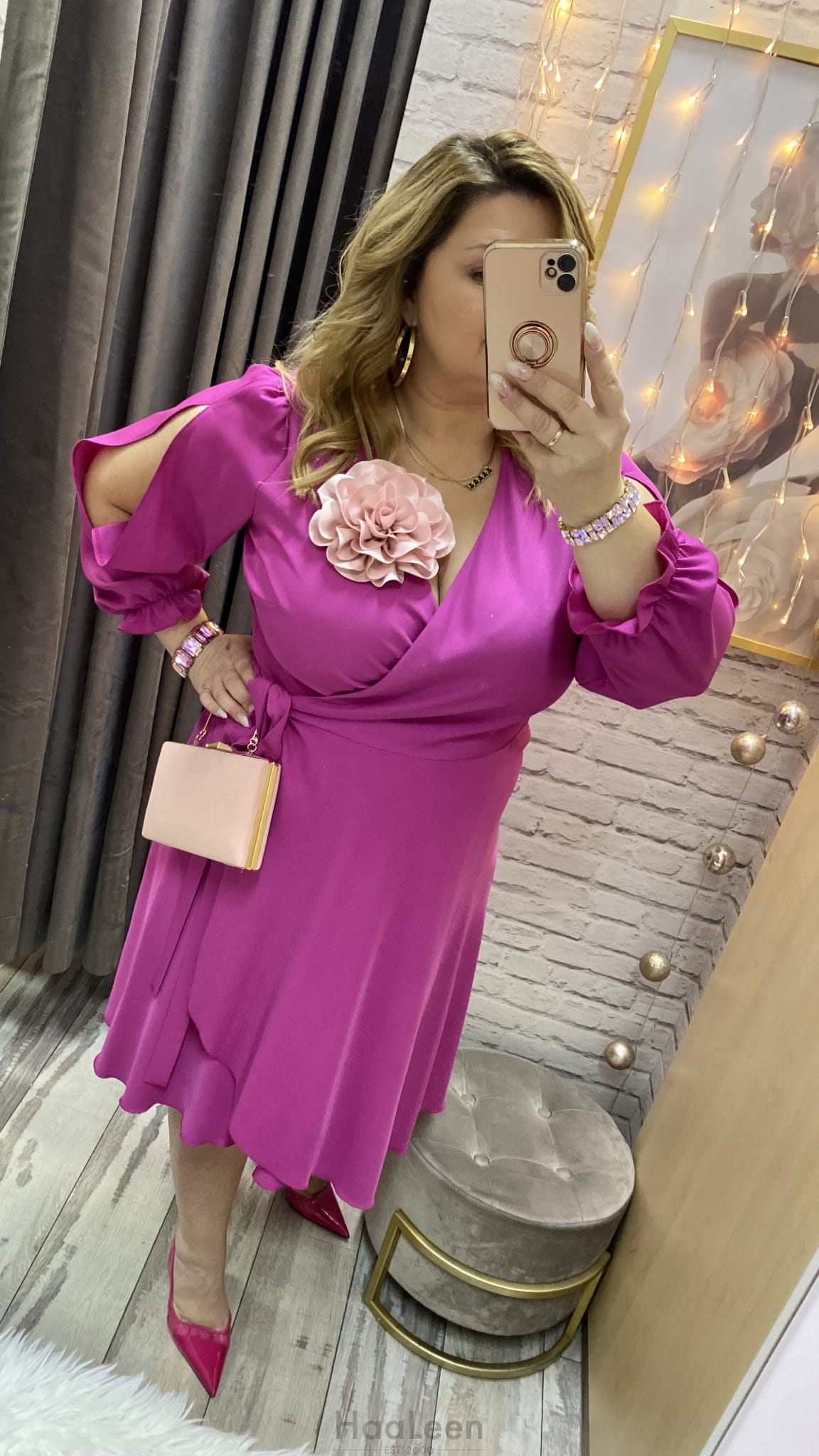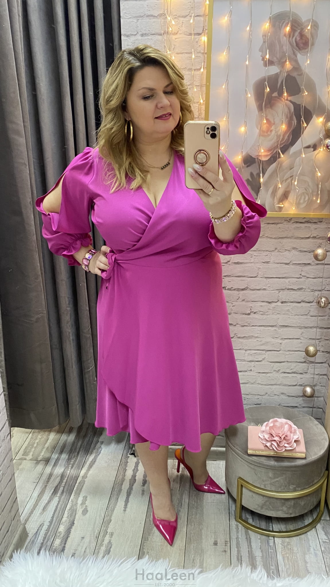 długość: midi, rękaw długi z rozcięciem, dekolt V do regulacji,