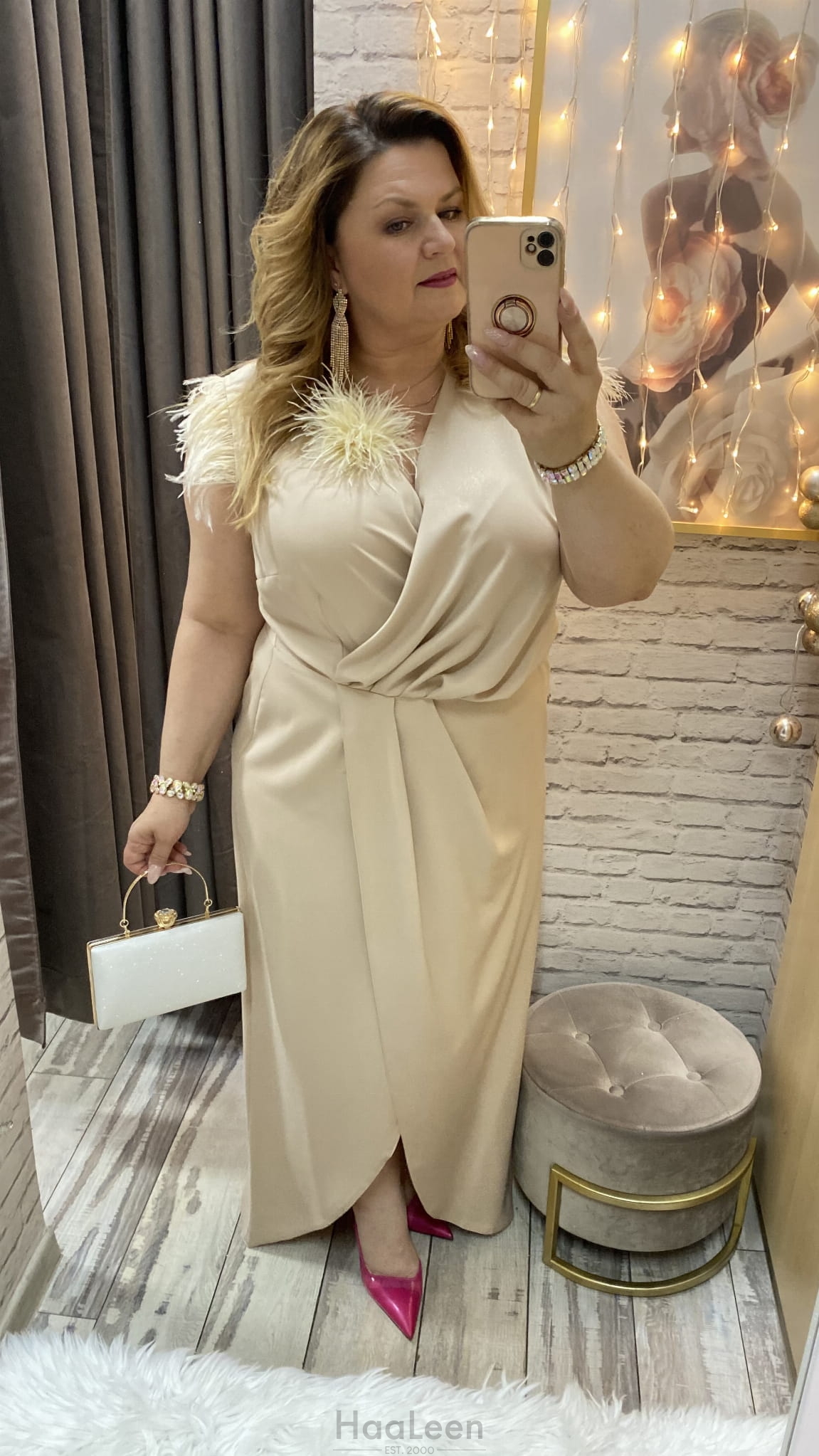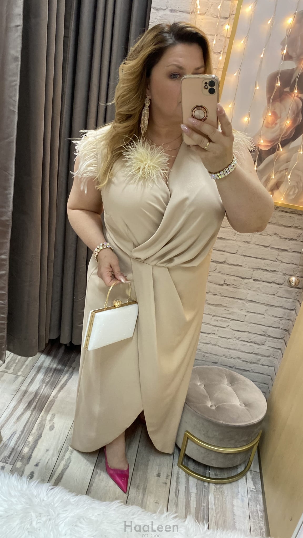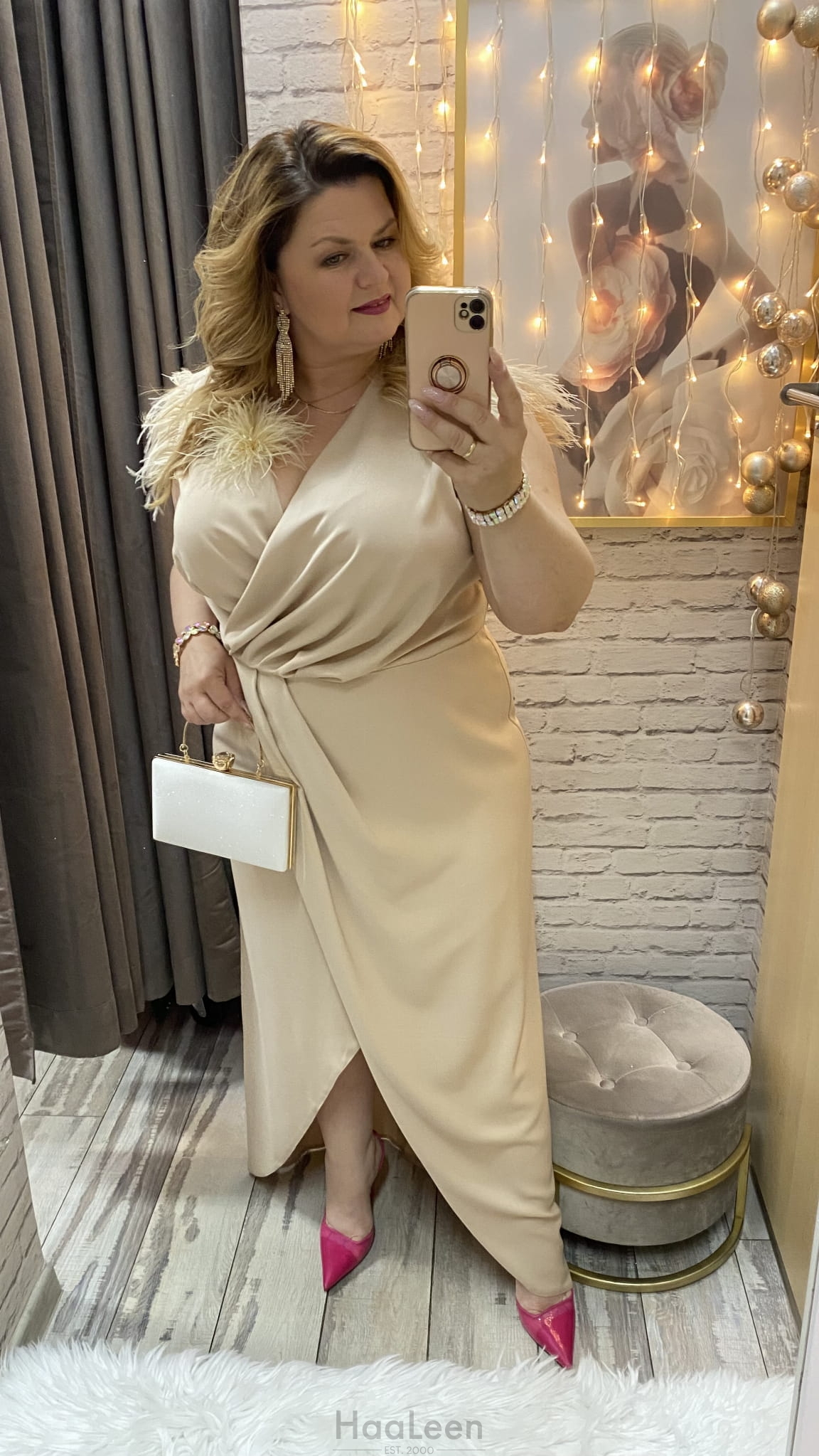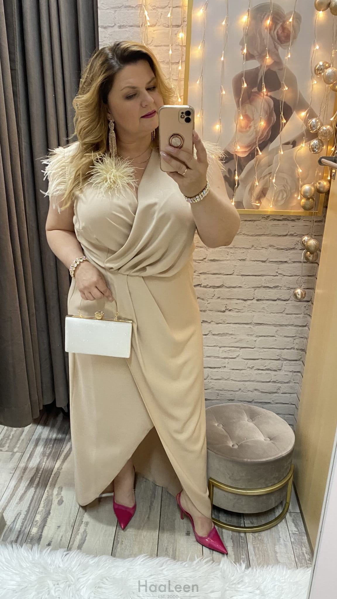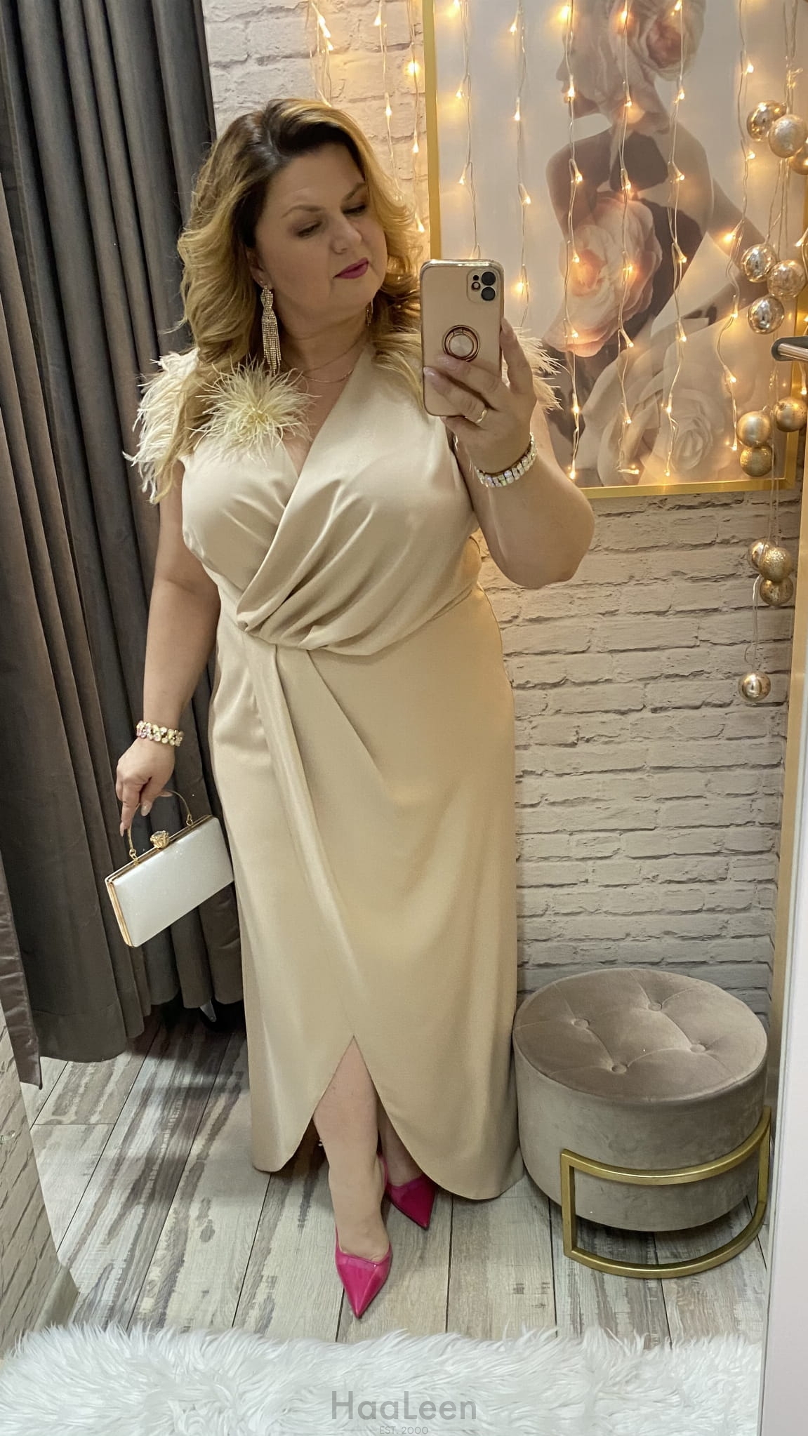 długość: maxi, efektowny dekolt zakładany V, dekolt plecy okrągły, zamek, ołówkowa dopasowana w biuście, tali, biodrach