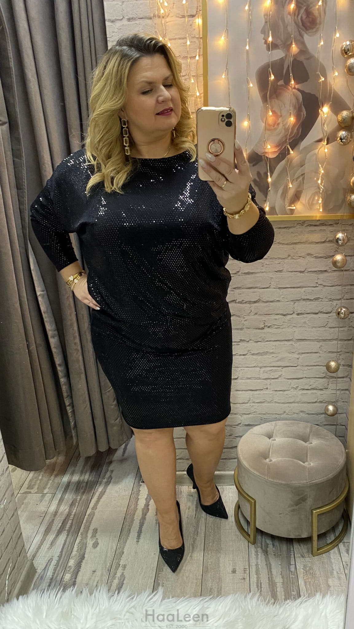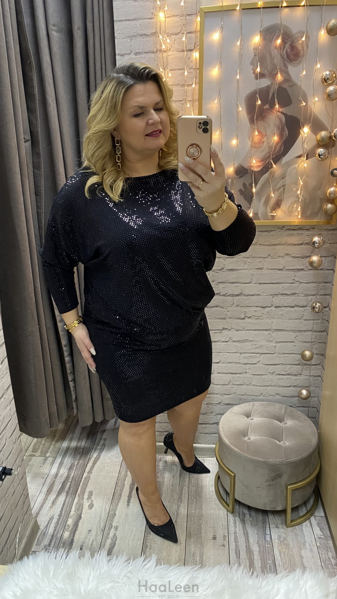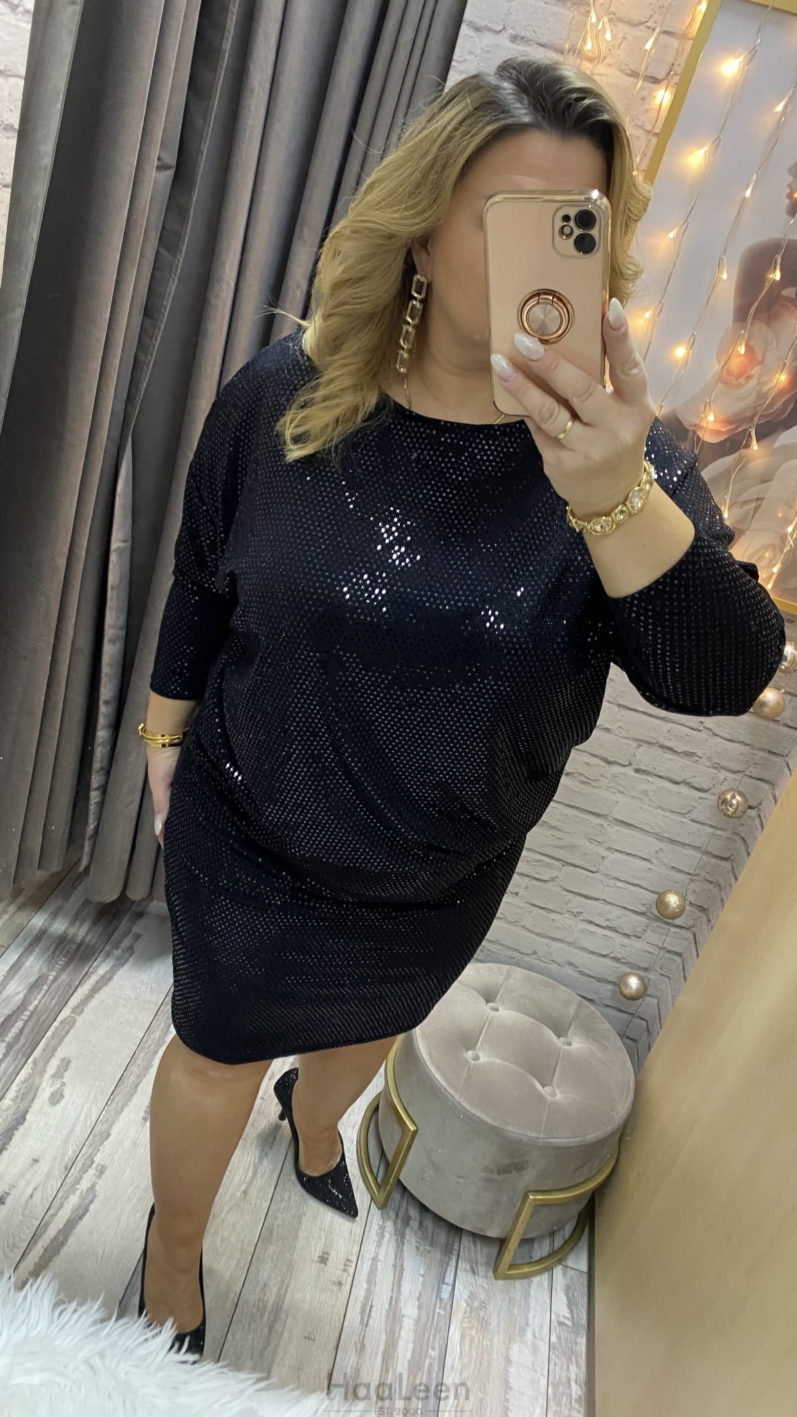 długość: midi-mini regulujesz sama, rękaw 7/8., dekolt przód łódka,
