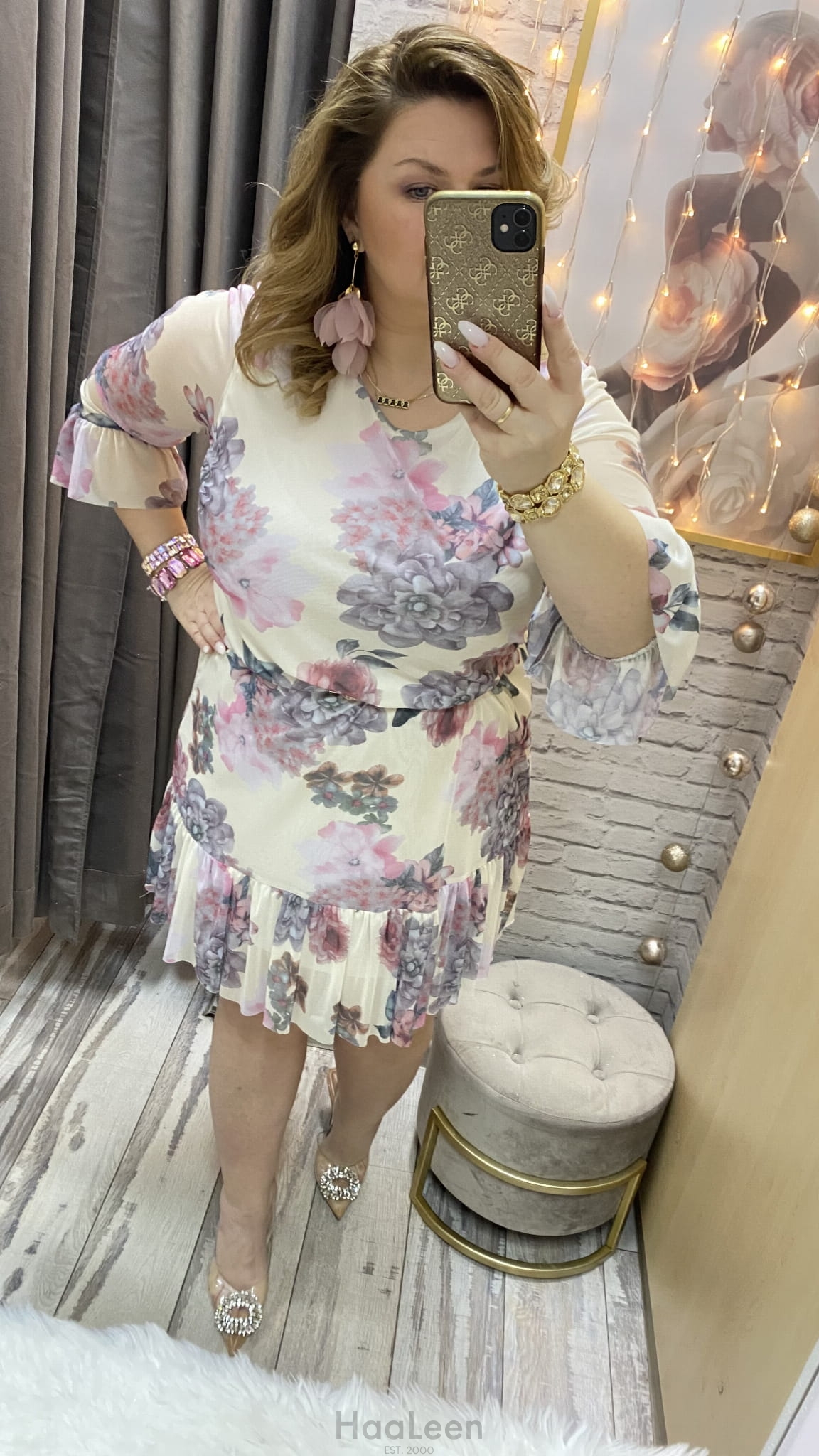 długość: mini- midi, rękaw siateczka 3/4., dekolt okrągły, posiada halkę bawełna rozciągliwa,