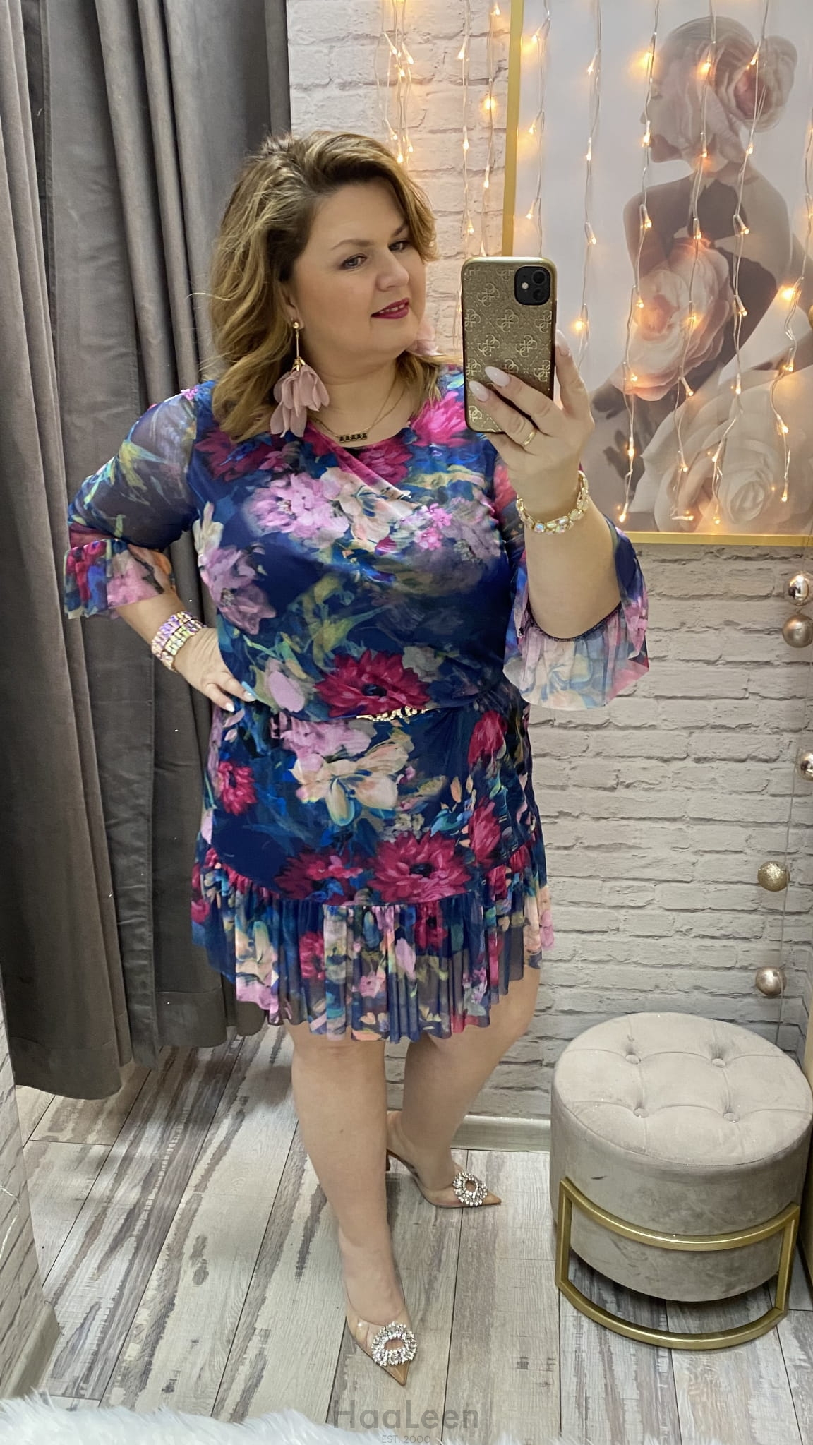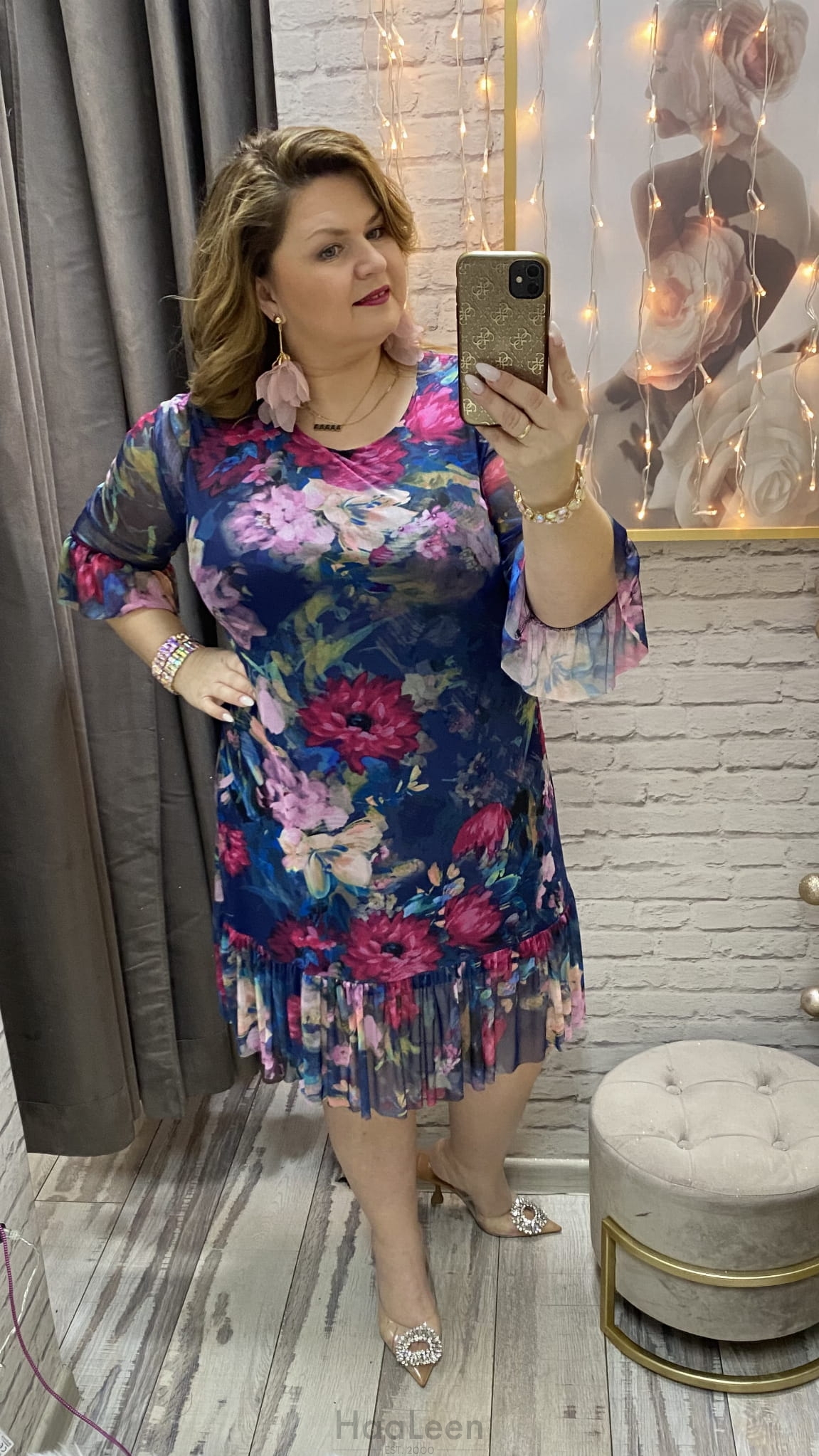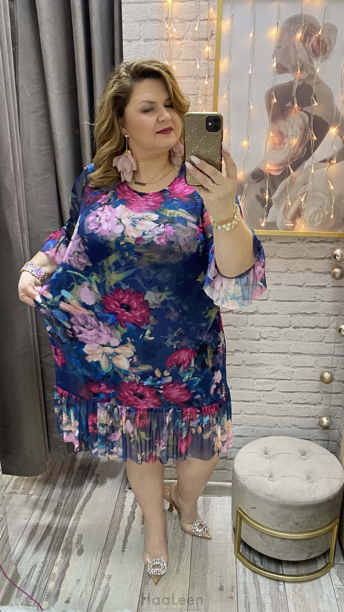 długość: mini- midi, rękaw siateczka 3/4., dekolt okrągły, posiada halkę bawełna rozciągliwa,