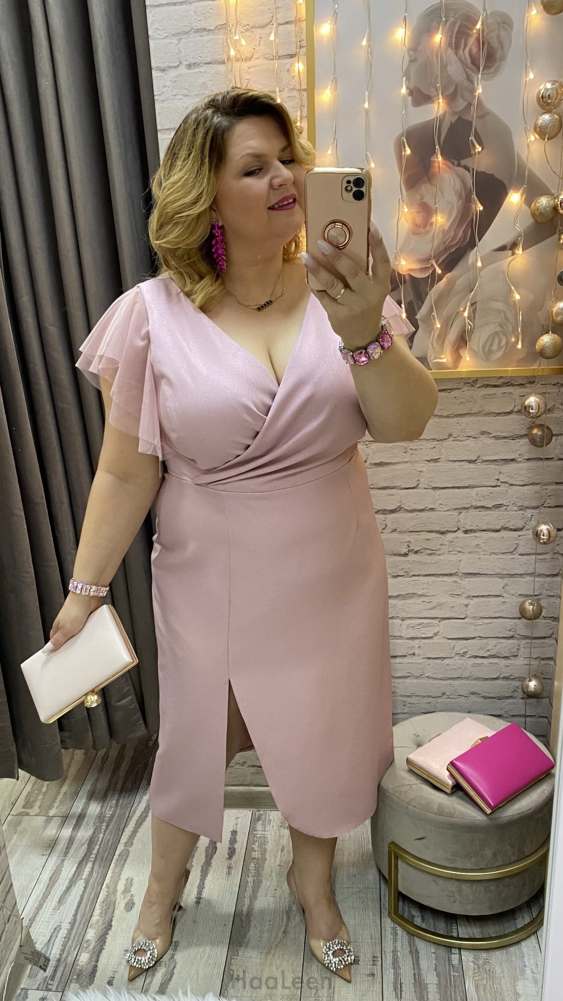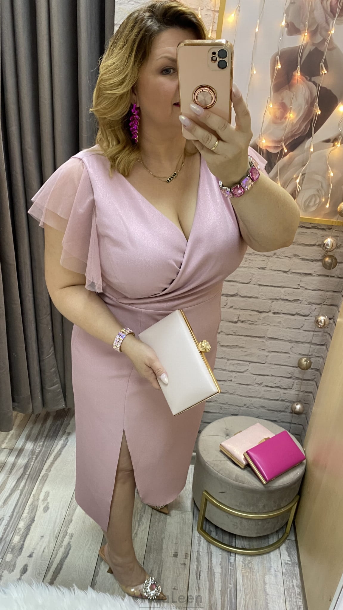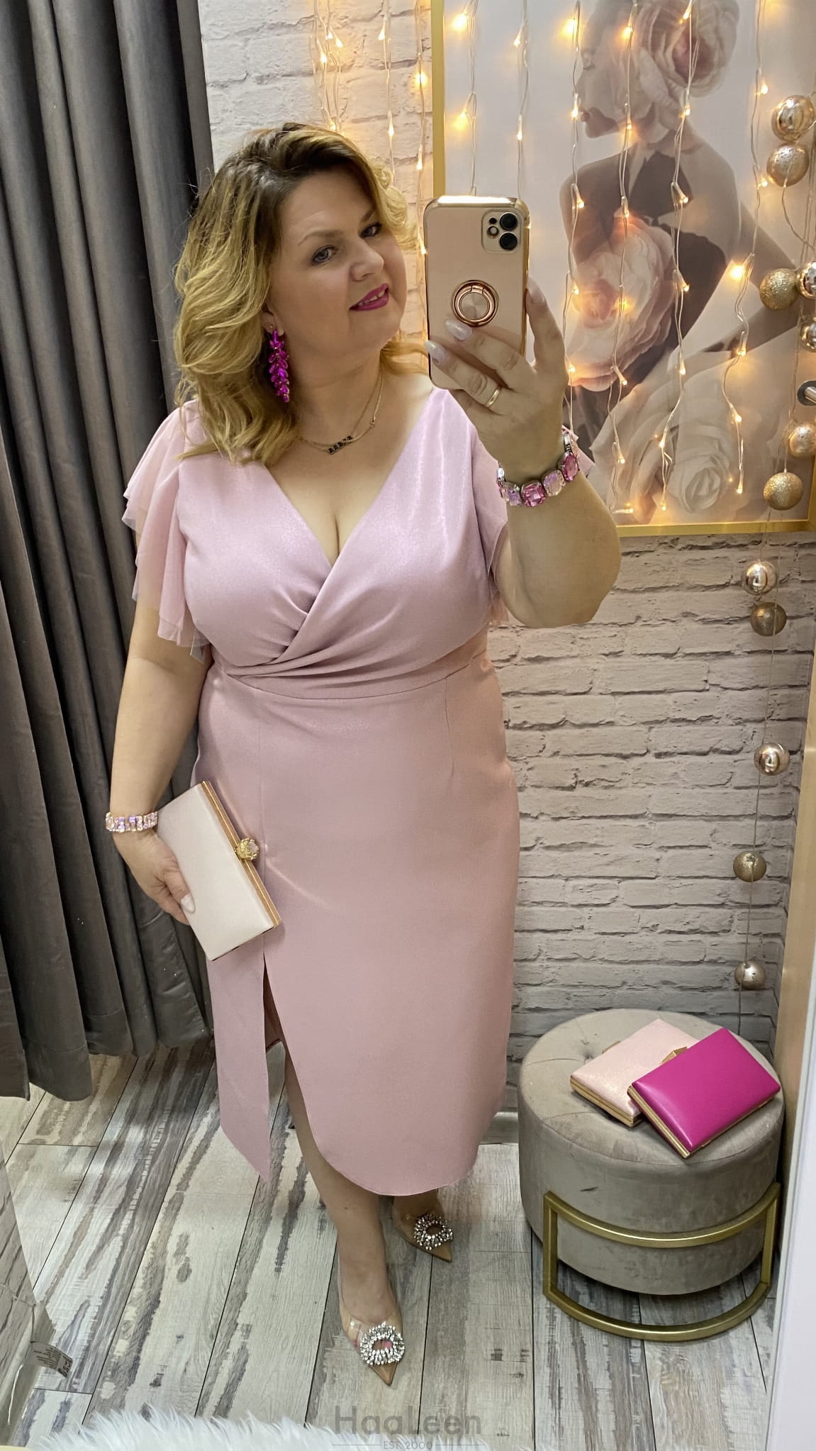 długość: midi, efektowny dekolt zakładany V obejmuje bardzo dobrze biust, dopasowana w tali,