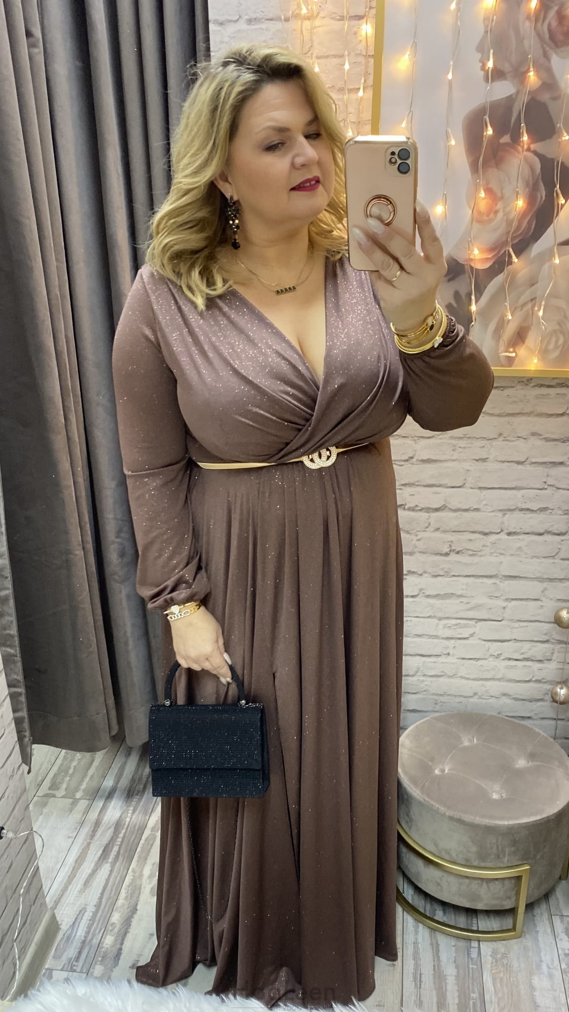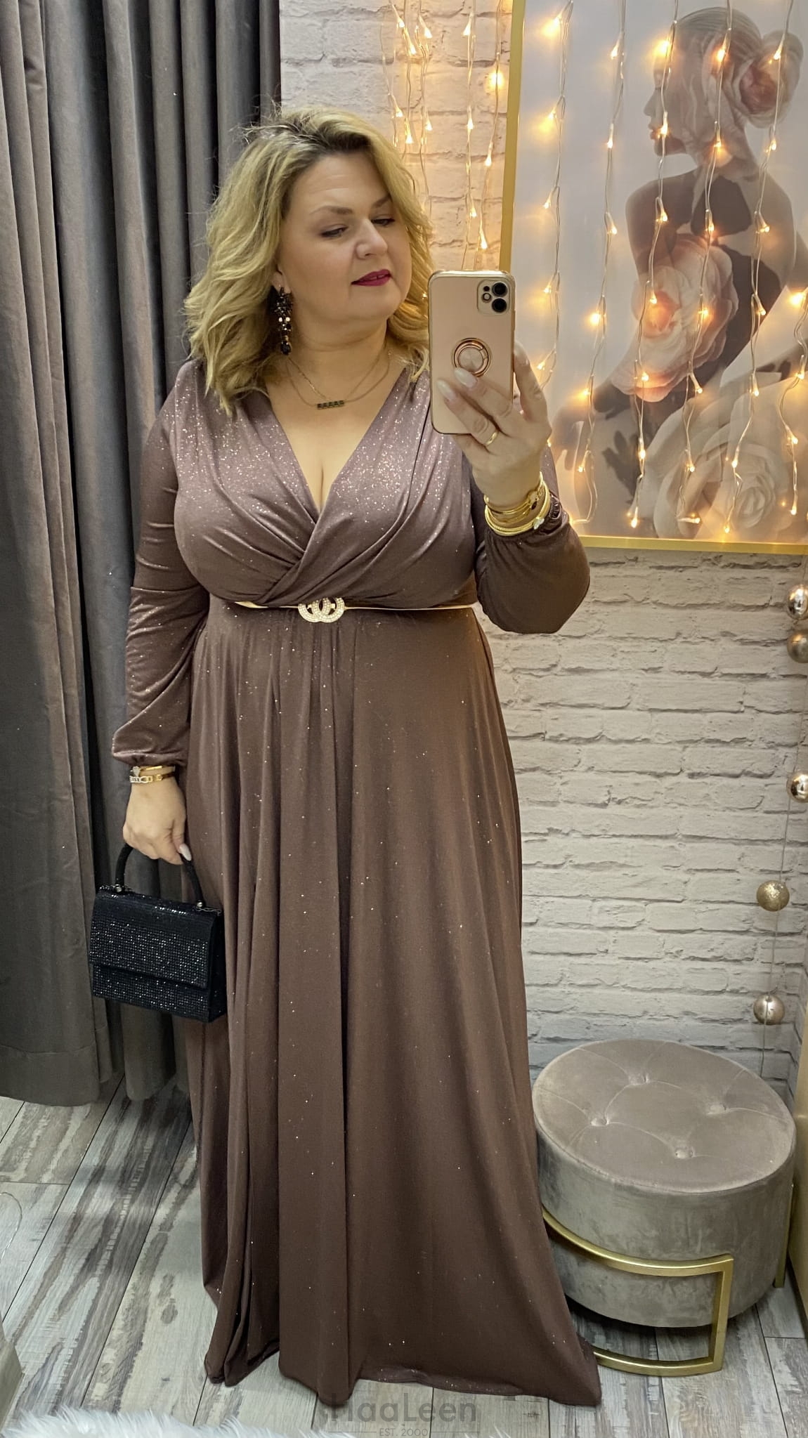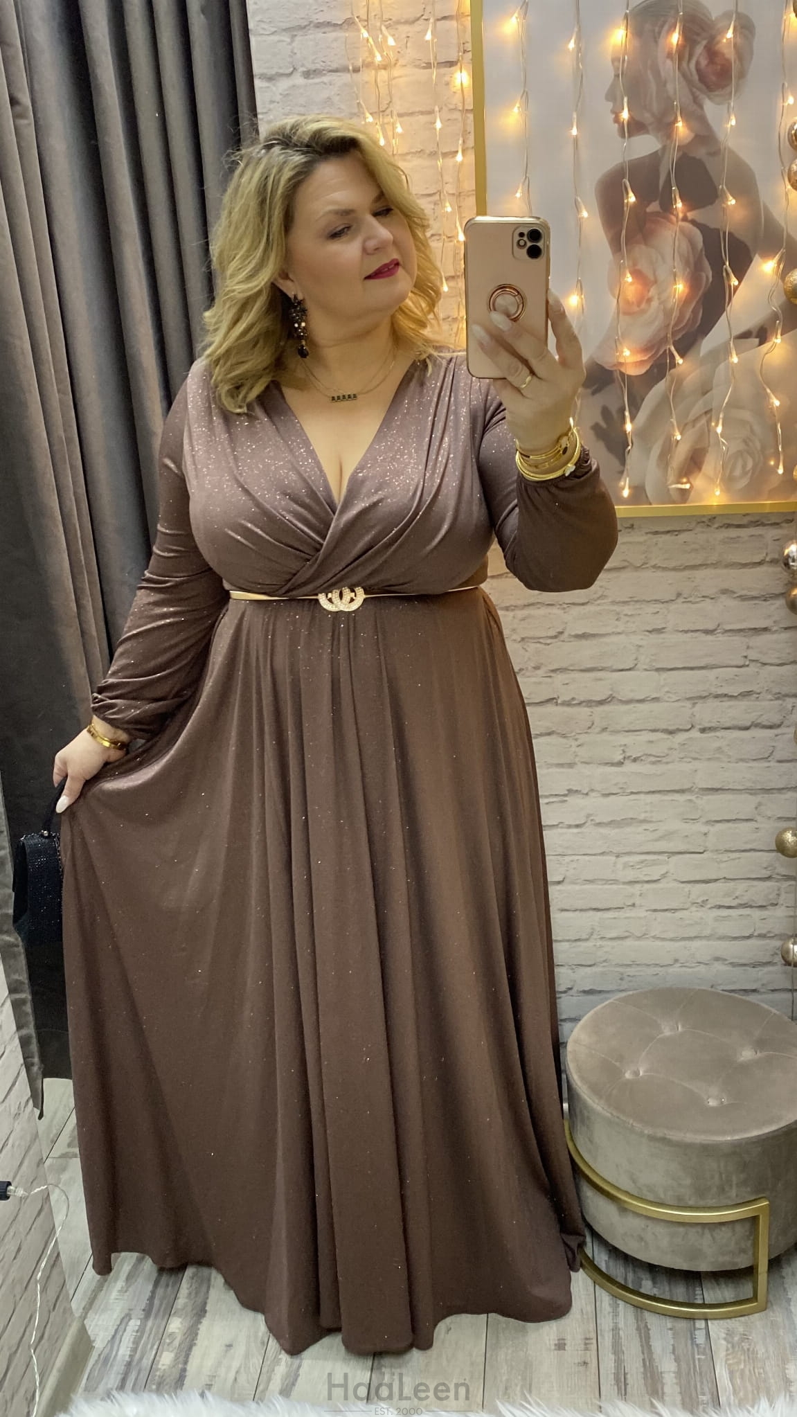 sukienka ROKSANA 34-54 czekolada złota