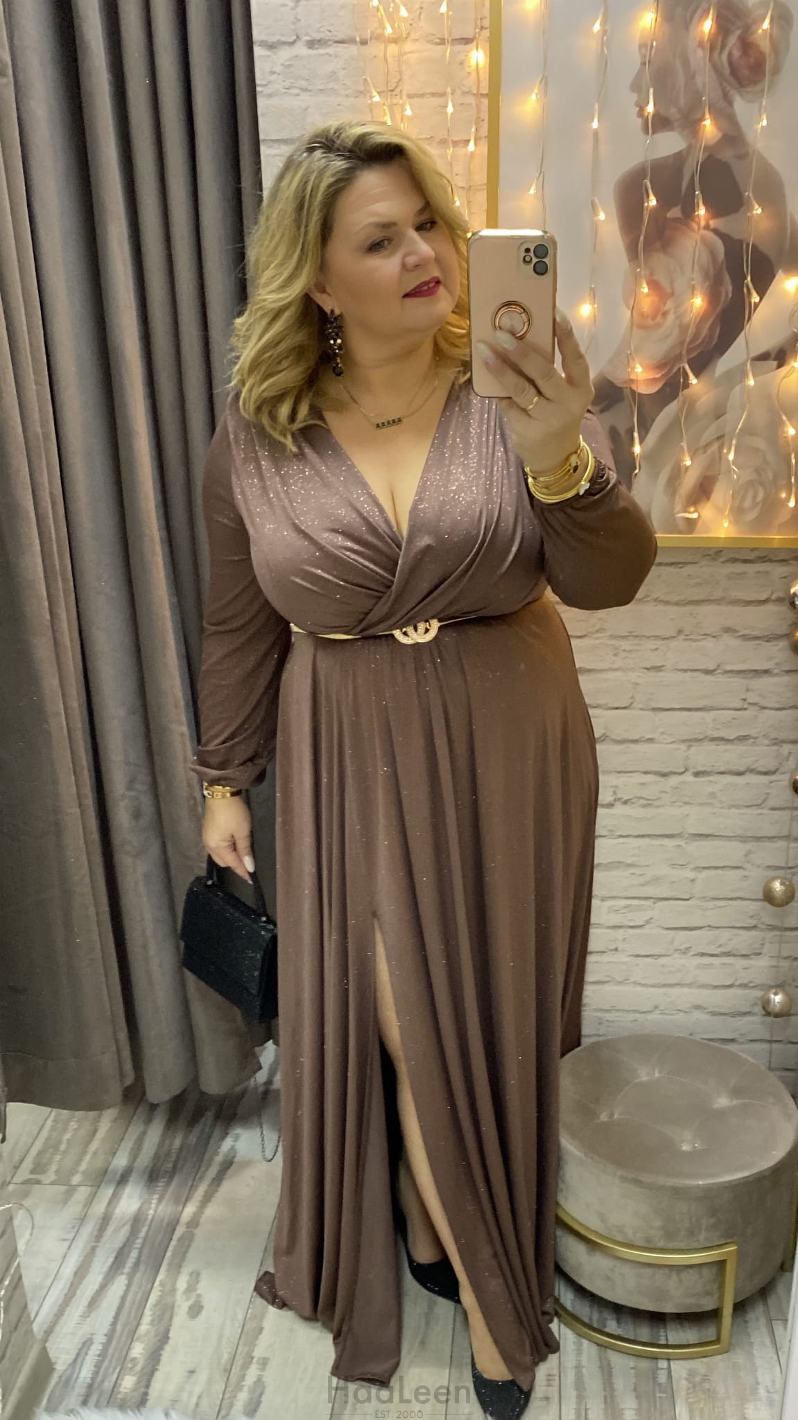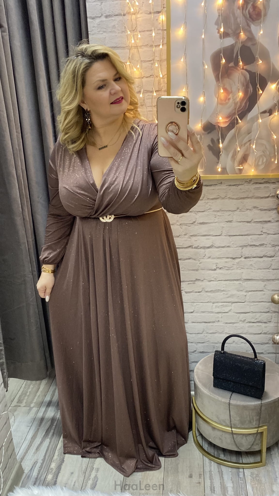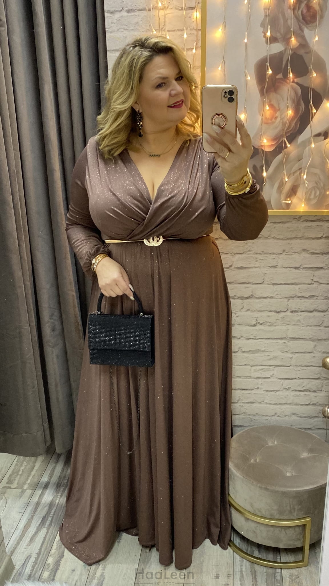 sukienka ROKSANA 34-54 czekolada złota