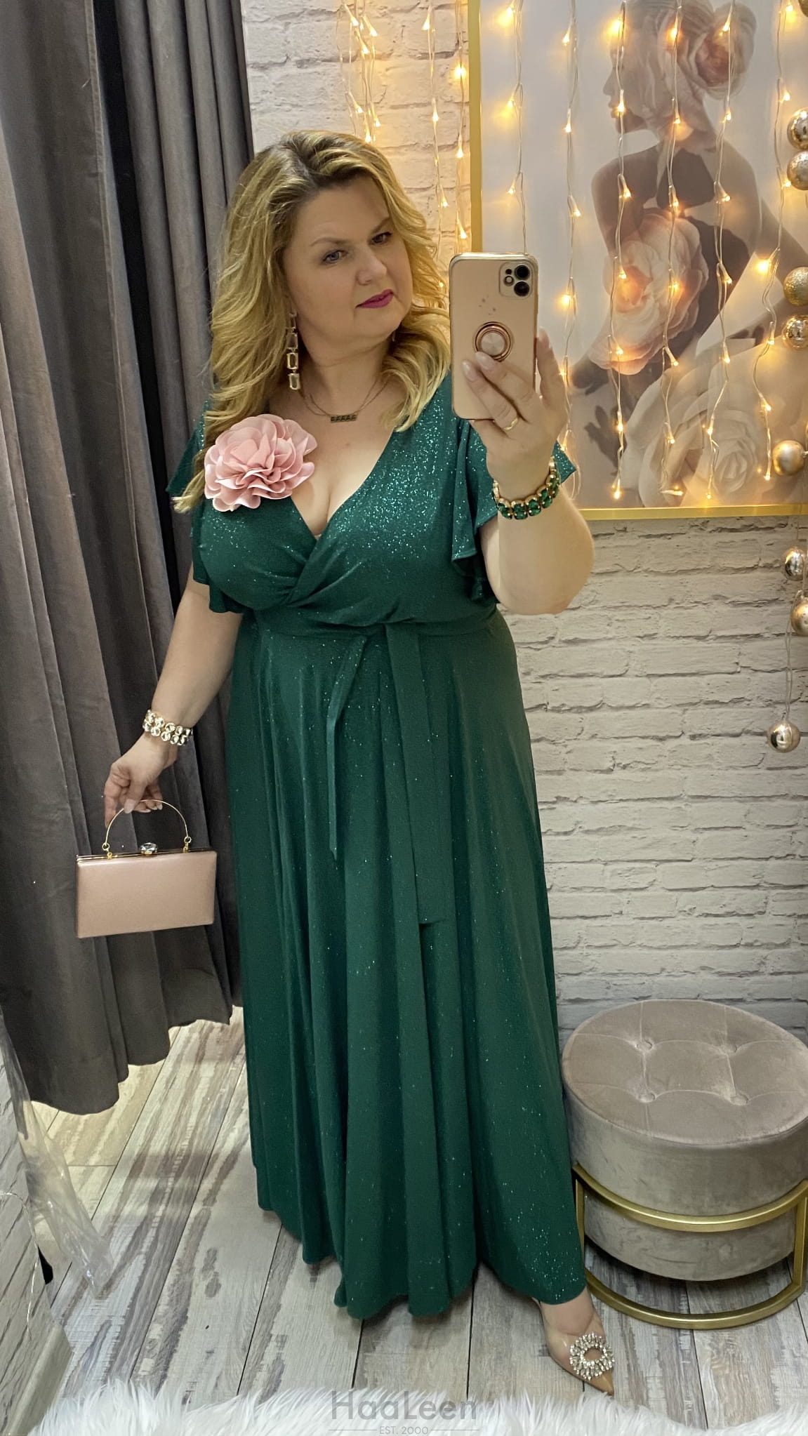 długość: maxi przed kostkę, model młodzieżowy, efektowny dekolt zakładany V, dekolt plecy okrągły, zamek na plecach, dopasowana w tali , wyszczupla, podkreśla sylwetkę, tuszuje okolice tali i bioder,