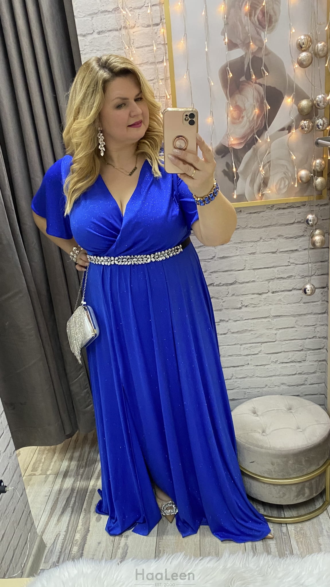 długość: maxi, rękaw krótki., dekolt V zakładany,