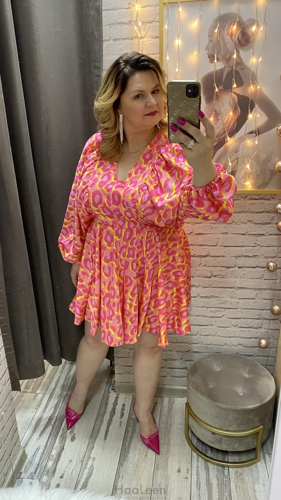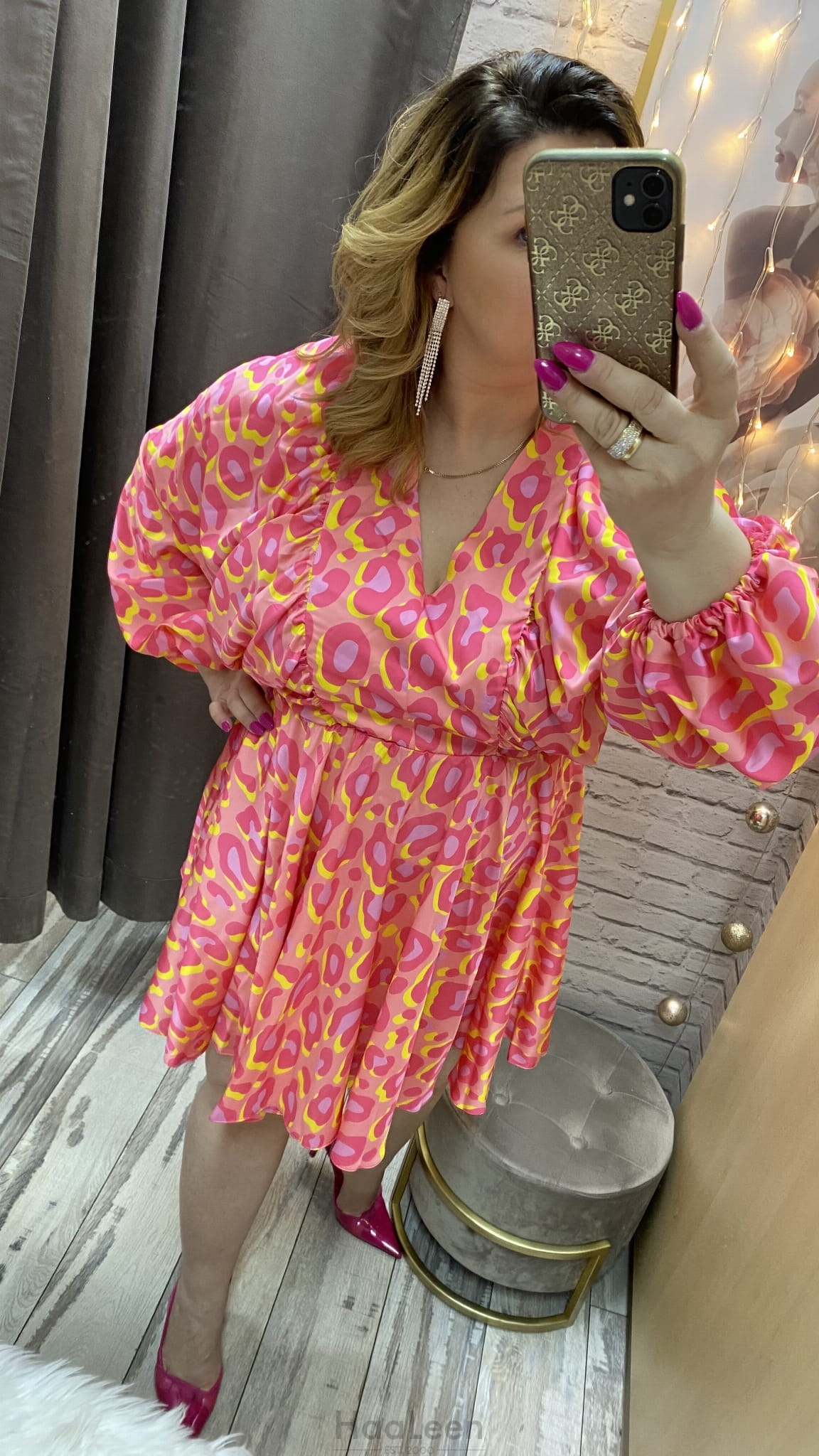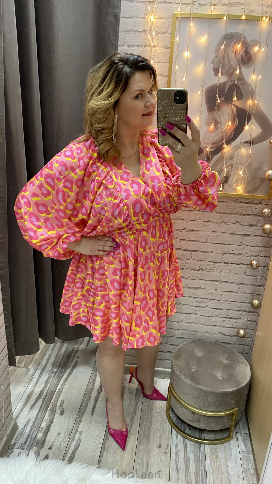 długość: mini , rekaw 3/4., gumka w tali,
